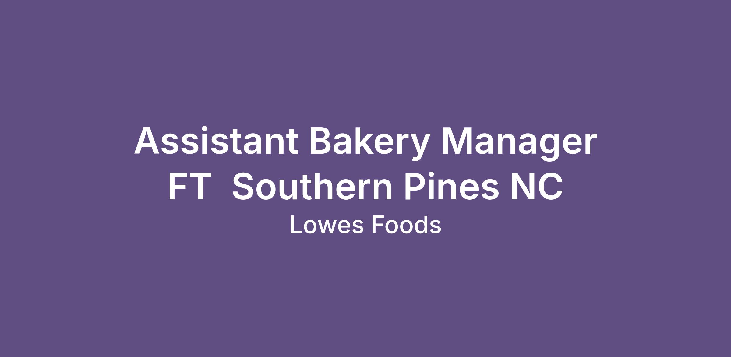 Assistant Bakery Manager FT  Southern Pines NC