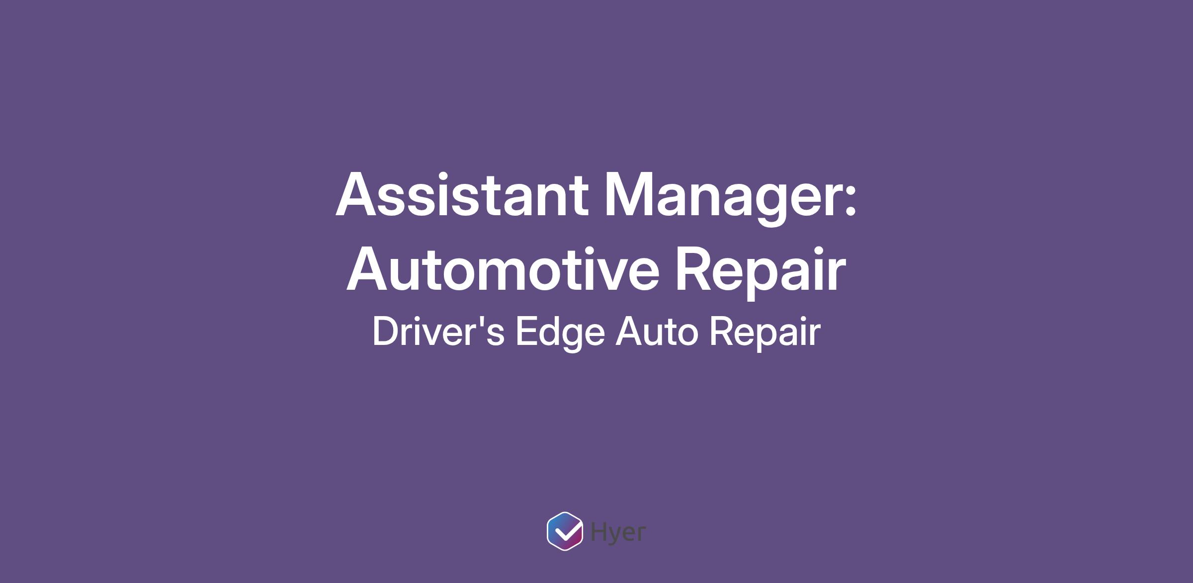 The Assistant Manager is responsible for managing, selling and promoting all products and services offered by Driver's Edge by following the company’s store standards and expectations.