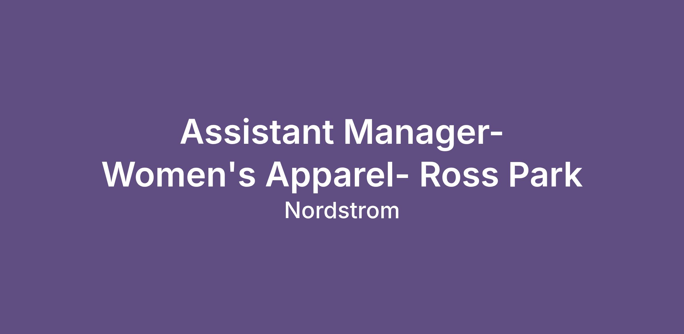 Assistant Manager- Women's Apparel- Ross Park
