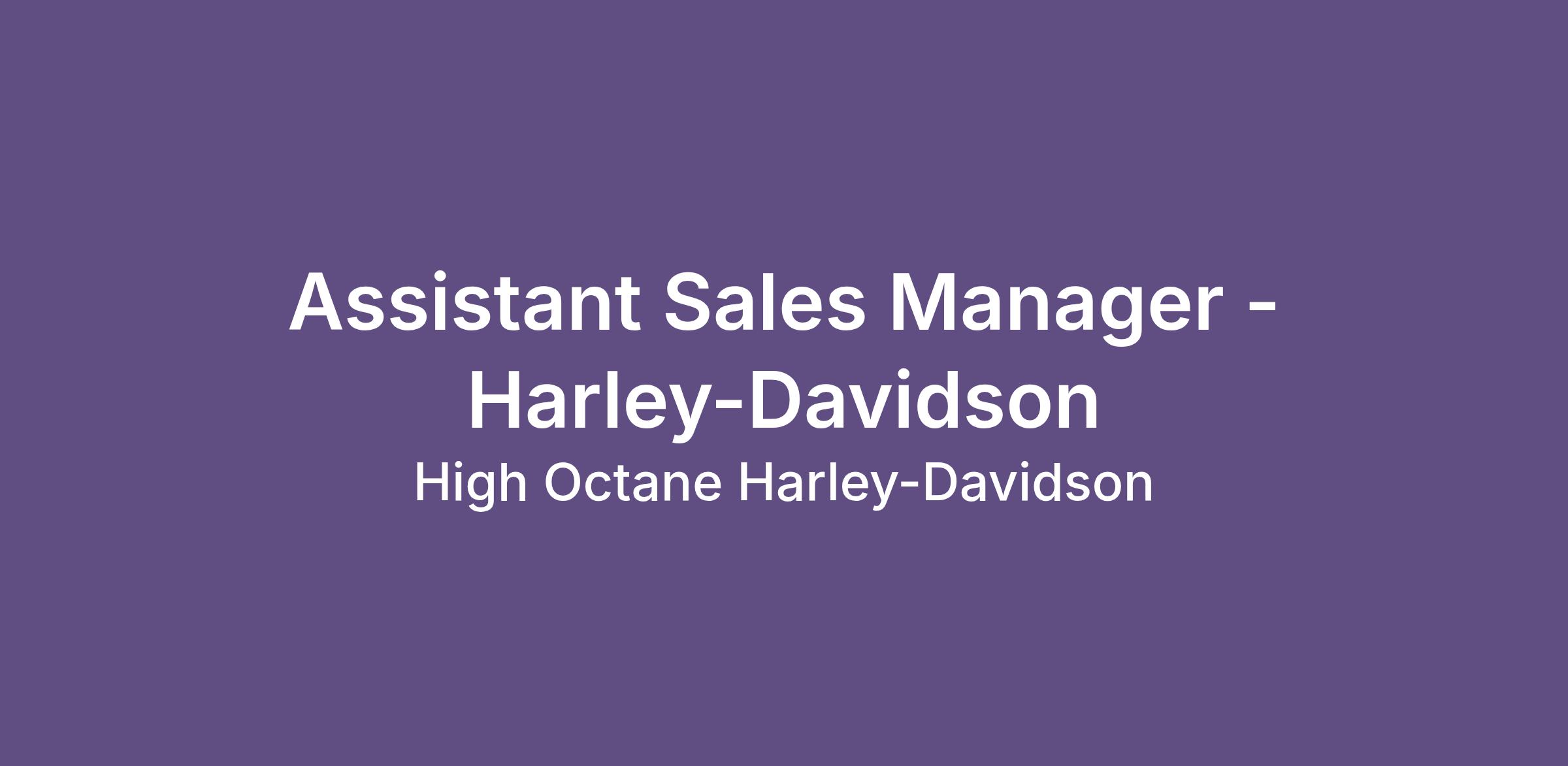 High Octane Harleyâ€'Davidson is one of New England’s top Harley destinations, with massive inventory, nonstop customer traffic, and a team that truly lives the motorcycle lifestyle. This is a highâ€'energy, riderâ€'focused dealership where your personality, hustle, and customer service skills translate directly into success.