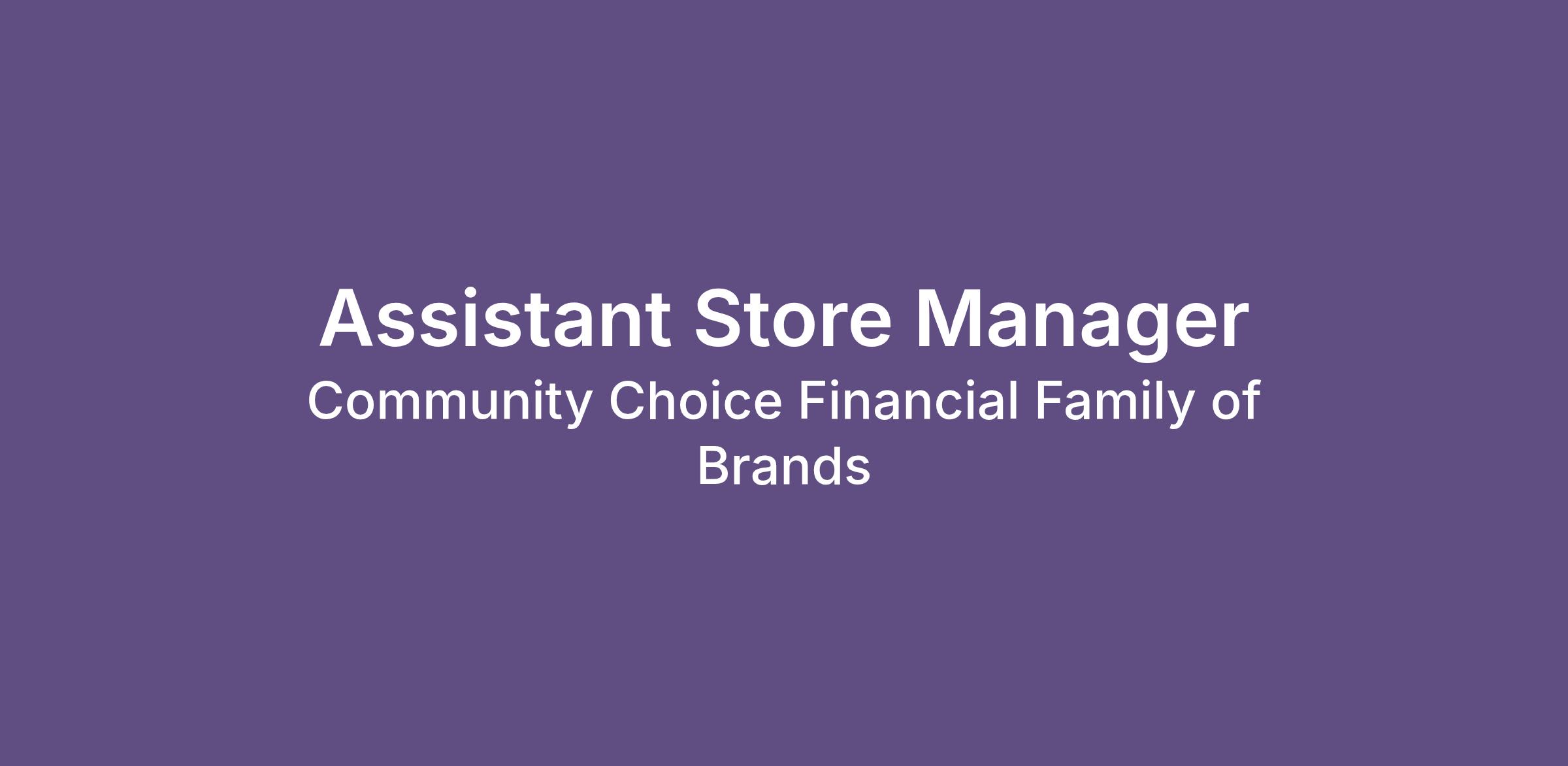 Important: The Community Choice Financial® Family of Brands will never ask you for banking or other payment information at any point during the interview or hiring process, nor will we conduct an interview via text message. Any official email correspondence will come from the domains @ccfi.com. In-store positions are in person only.