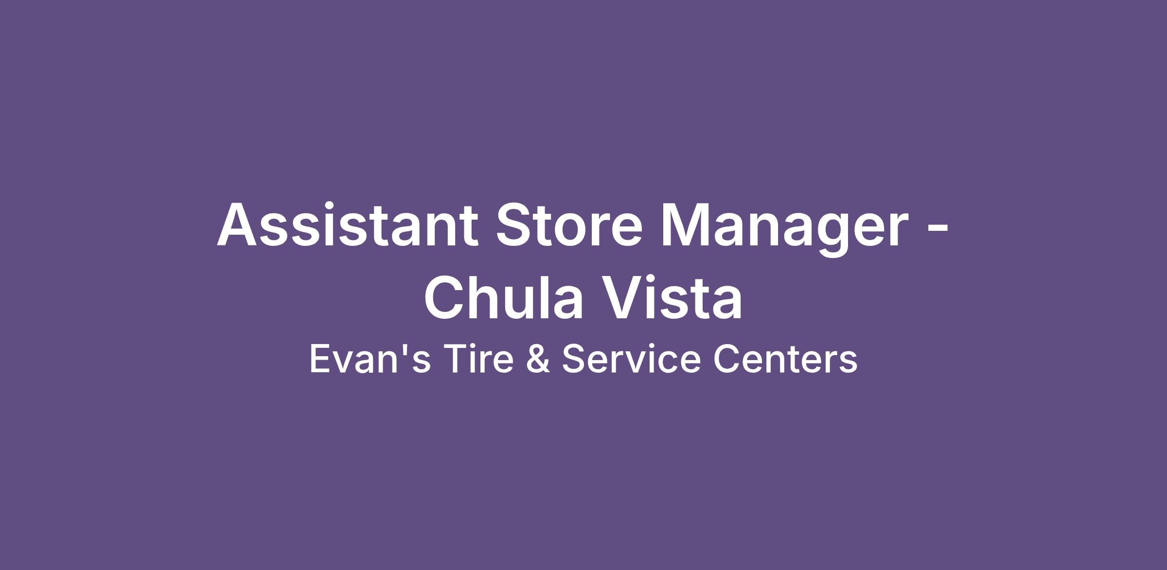 The Assistant Store Manager is responsible for selling and promoting all products and services offered by Evan's Tire and following the company’s store standards and expectations.