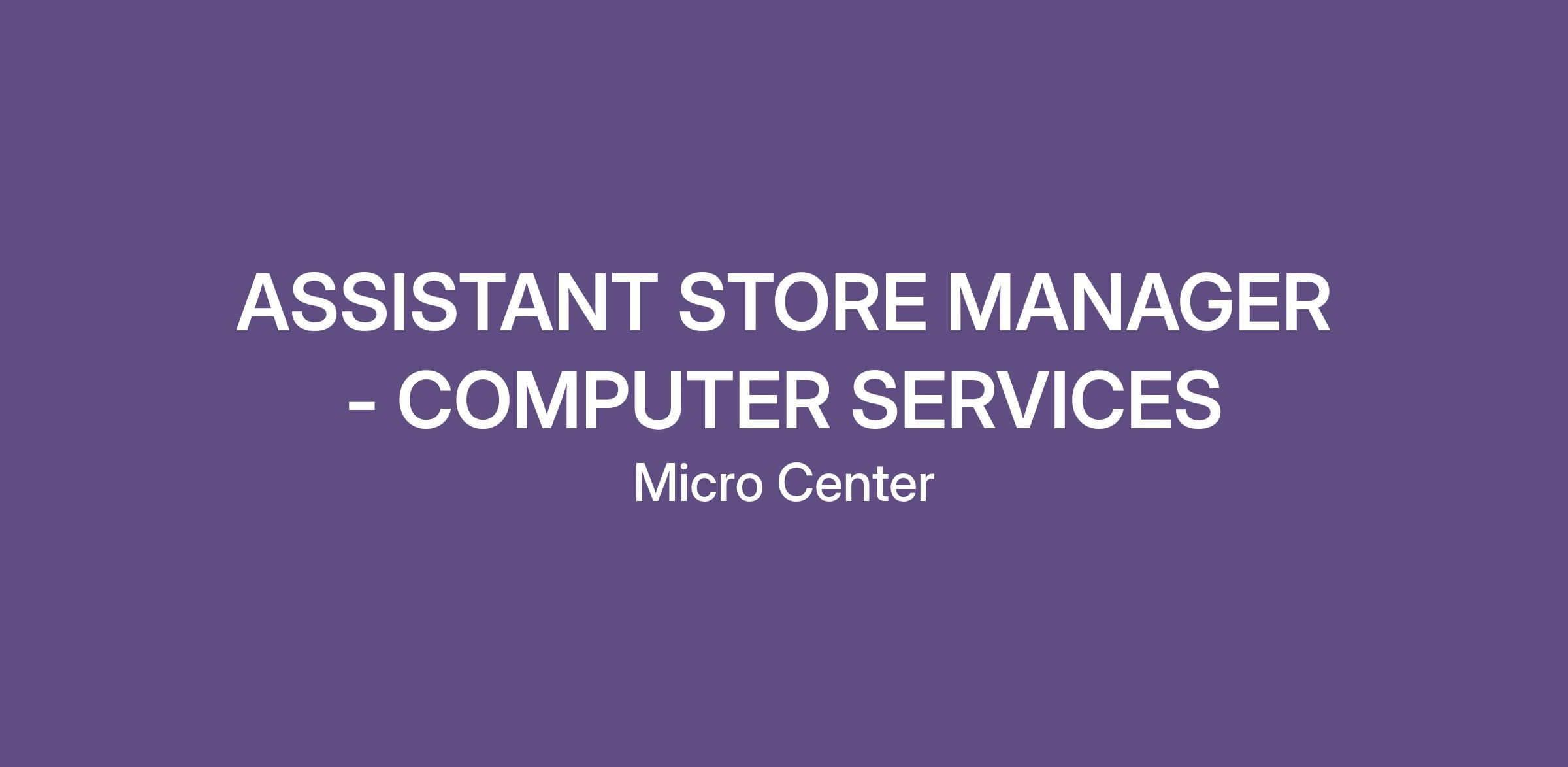 We are currently seeking self-motivated, results oriented ASSISTANT STORE MANAGER - COMPUTER SERVICES. It is Micro Center’s core promise to take care of our associates and customers which has led to our success over the last 40+ years!