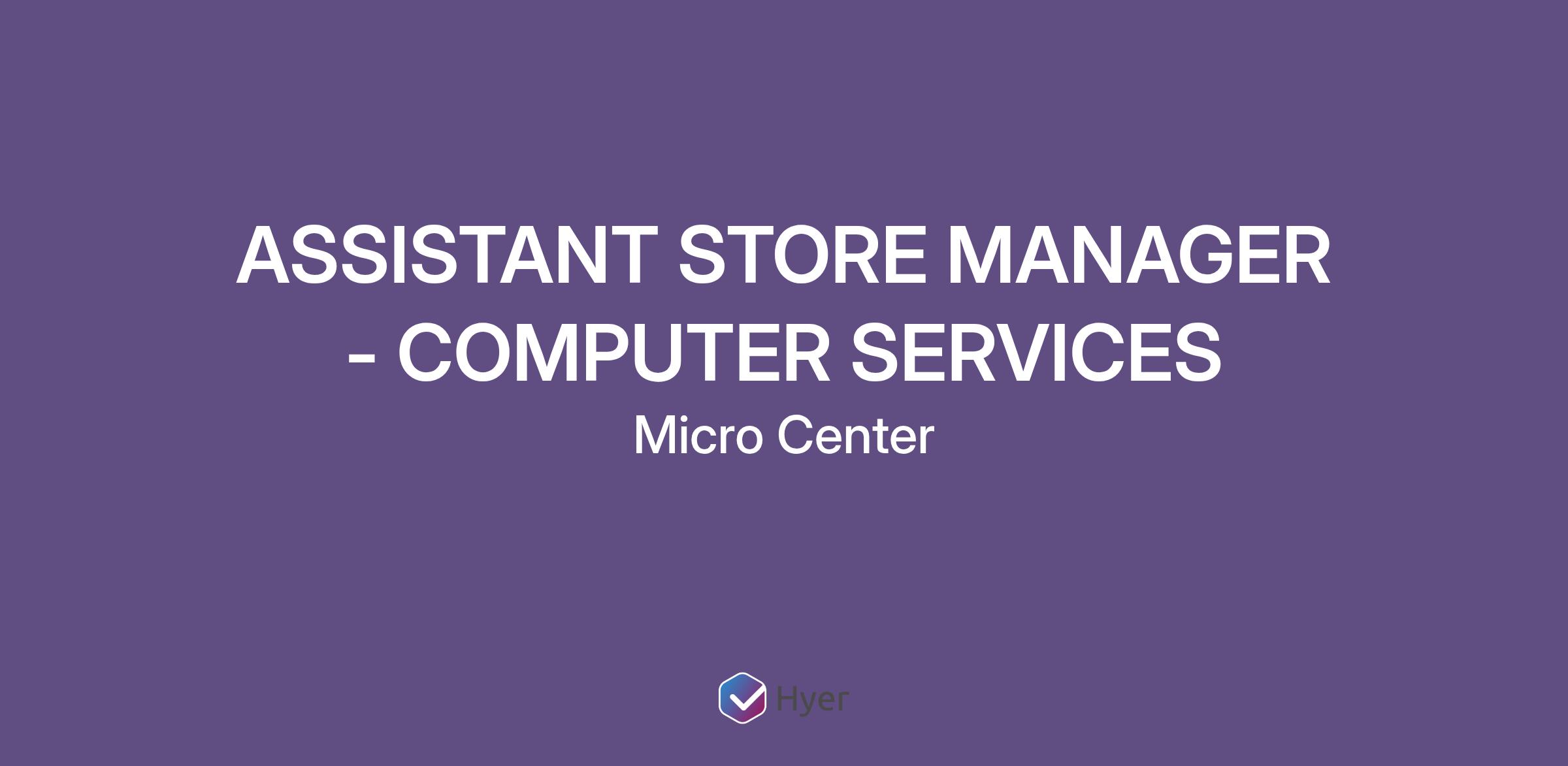 We are currently seeking self-motivated, results oriented ASSISTANT STORE MANAGER - COMPUTER SERVICES. It is Micro Center’s core promise to take care of our associates and customers which has led to our success over the last 40+ years!