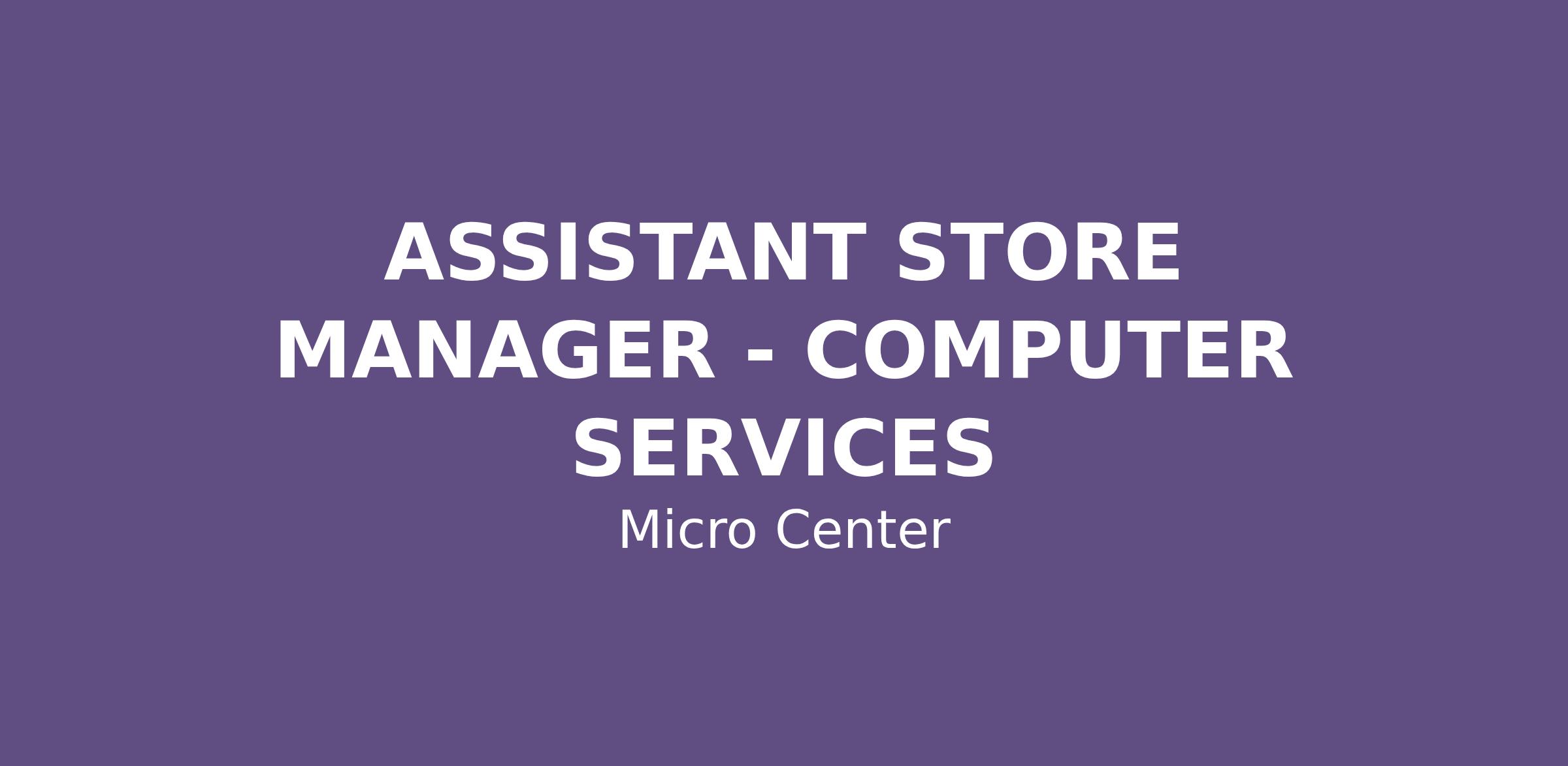 We are currently seeking a self-motivated, results oriented ASSISTANT STORE MANAGER - COMPUTER SERVICES. It is Micro Center’s core promise to take care of our associates and customers which has led to our success over the last 40+ years!