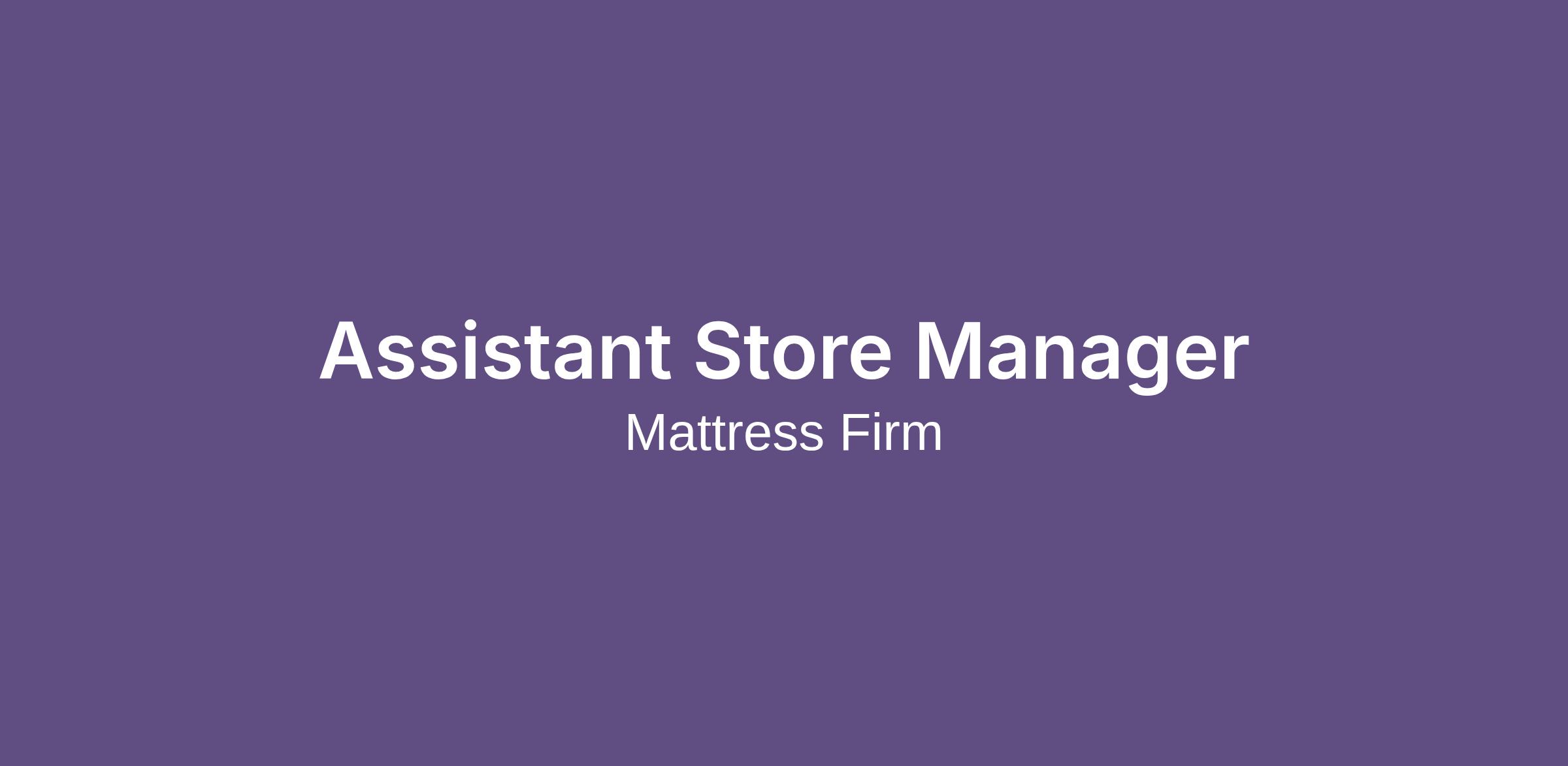 The Assistant Store Manager will elevate and enhance the customer's in-store experience by being a trusted sleep authority and offering best-in-class products. Assistant Store Managers will execute MFRM selling programs and support a seamless omnichannel experience to create a compelling and engaging environment that puts the customer at the center. This is a transitional role meant to develop your skills to become a store manager. They will serve as a lead in resolving customer-related issues and escalating when necessary. The Assistant Store Manager assists the Senior Store Manager in driving company initiatives and achieving sales performance goals by coaching associates on selling practices and ensuring the execution of in-store merchandising in multiple store units.