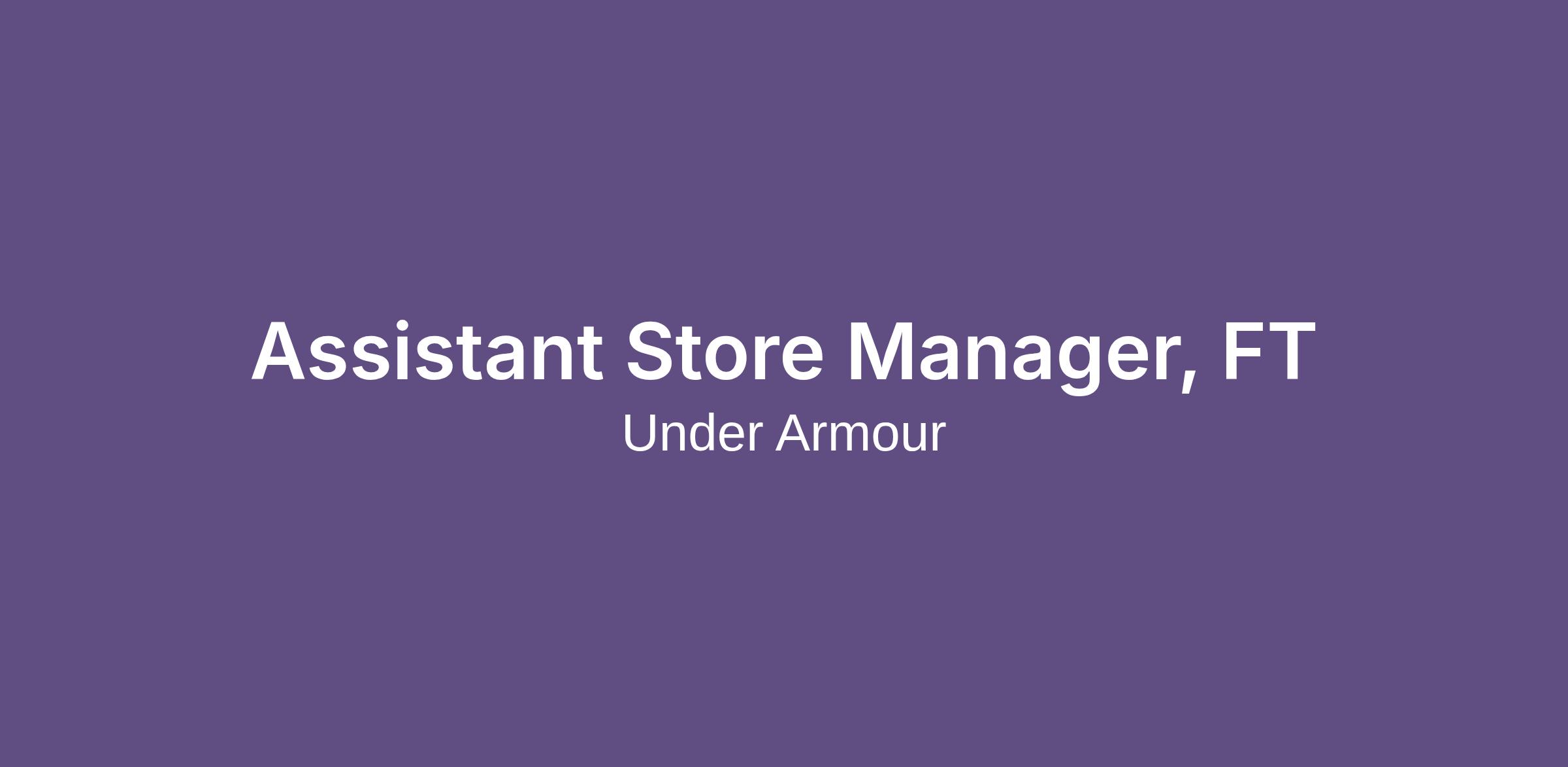 Assistant Store Manager, FT