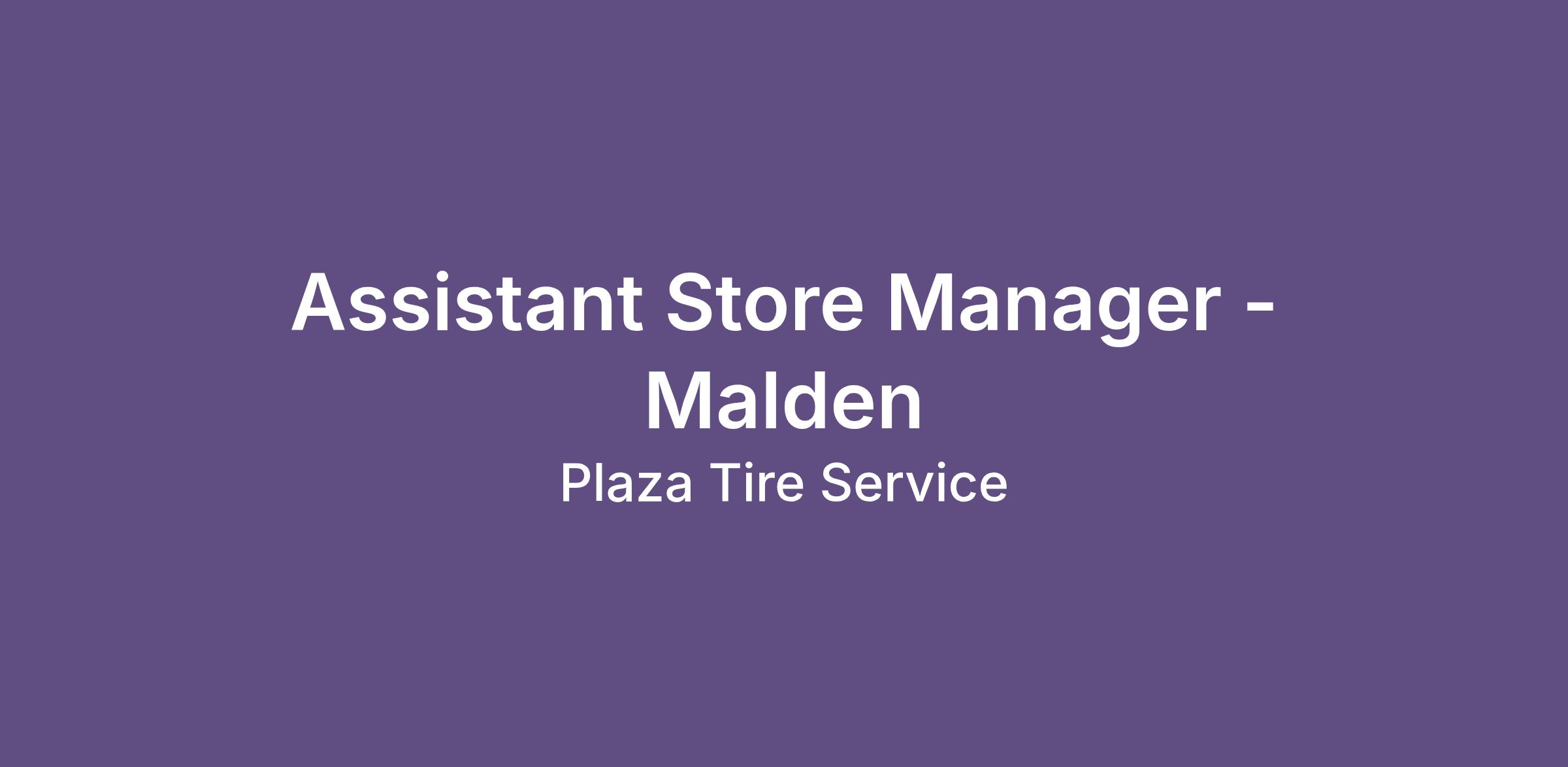Assistant Store Manager - Malden