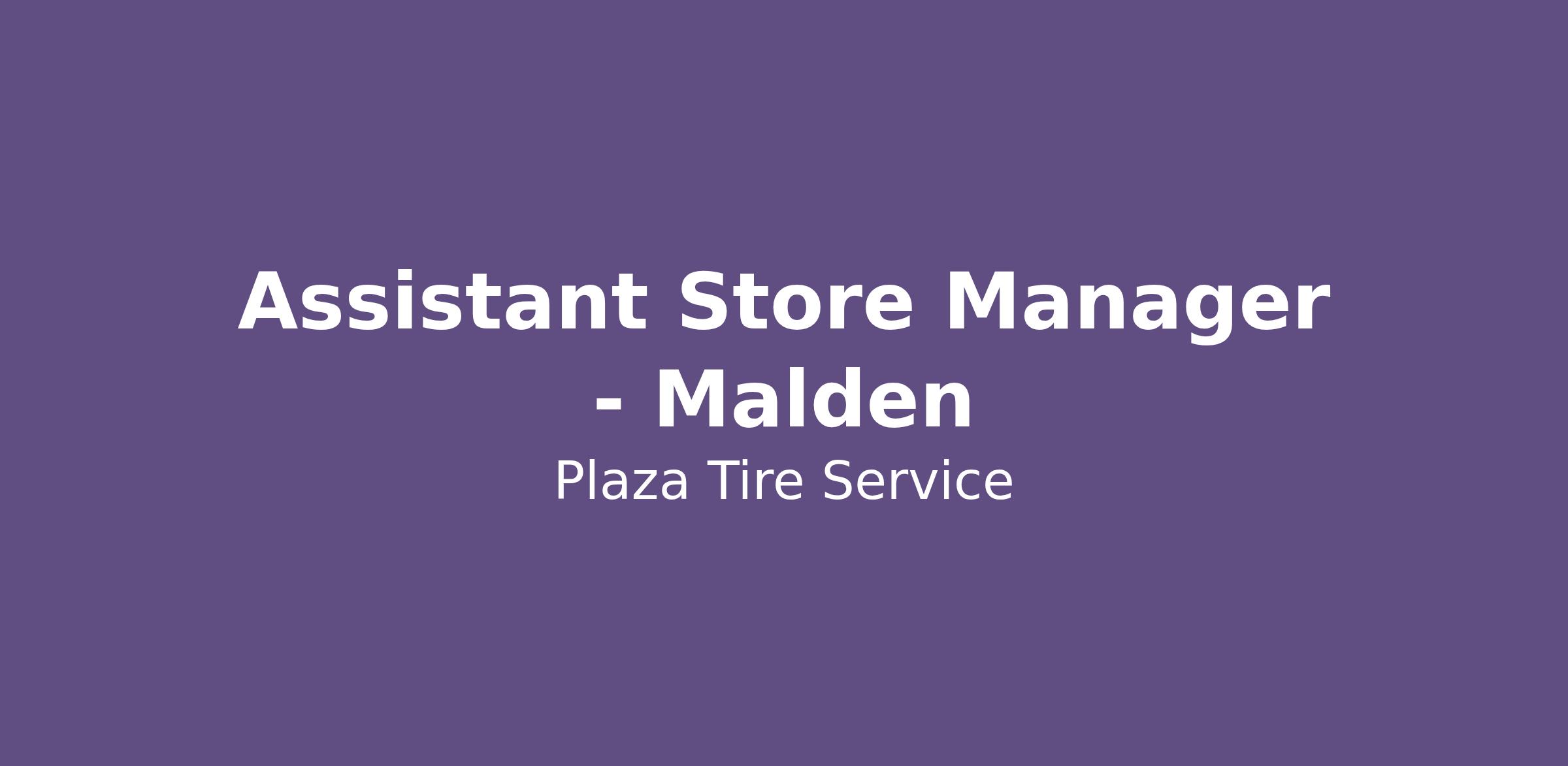 Assistant Store Manager - Malden