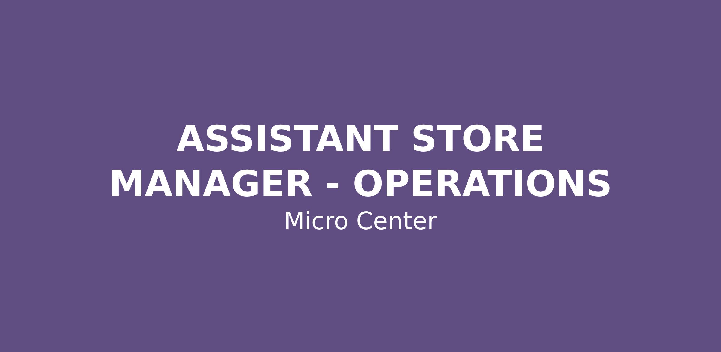 We are currently seeking self-motivated, results oriented ASSISTANT STORE MANAGER - OPERATIONS. It is Micro Center’s core promise to take care of our associates and customers which has led to our success over the last 40+ years!
