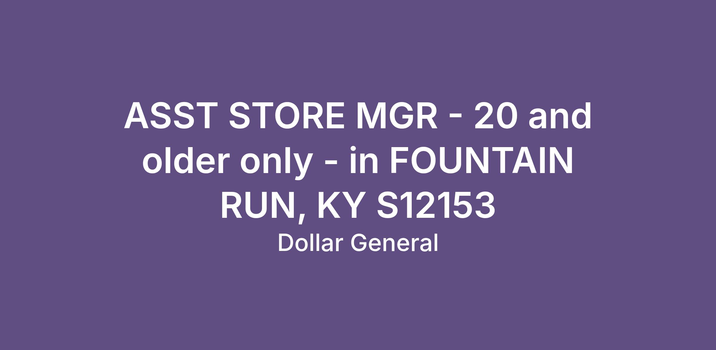 ASST STORE MGR - 20 and older only - in FOUNTAIN RUN, KY S12153