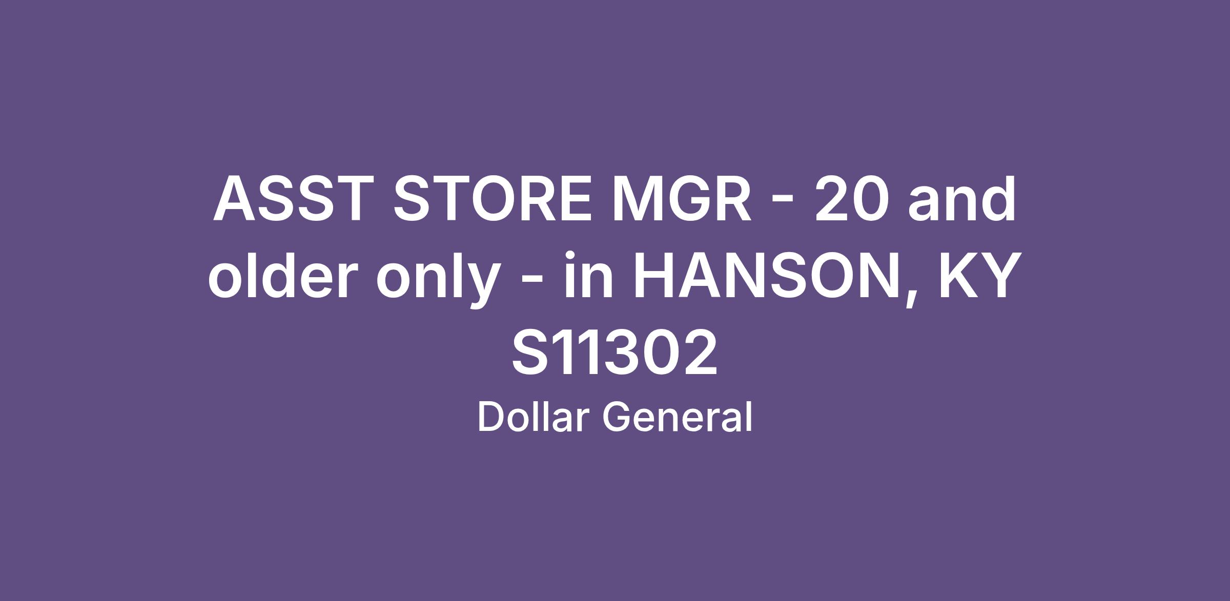 ASST STORE MGR - 20 and older only - in HANSON, KY S11302