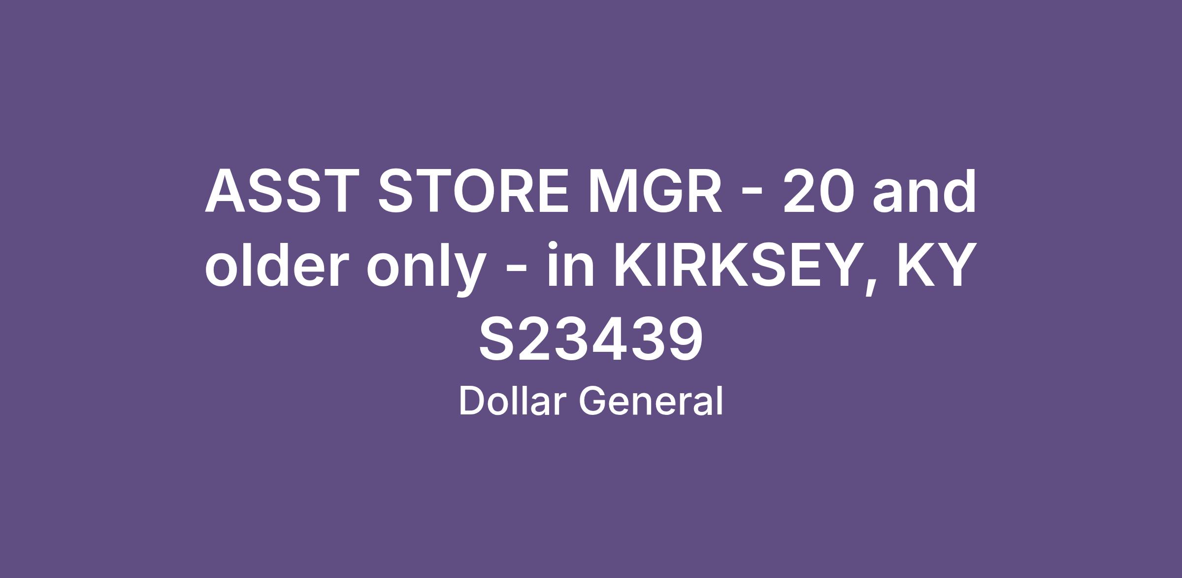 ASST STORE MGR - 20 and older only - in KIRKSEY, KY S23439