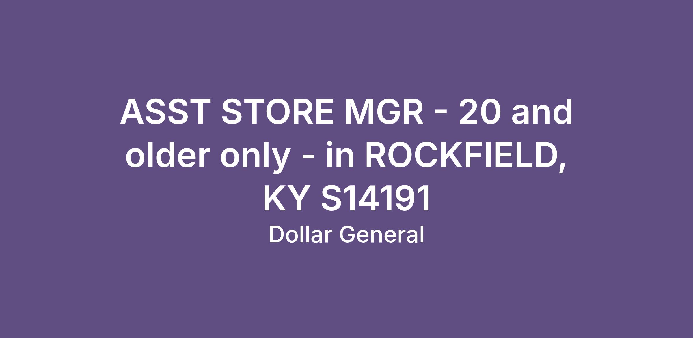 ASST STORE MGR - 20 and older only - in ROCKFIELD, KY S14191