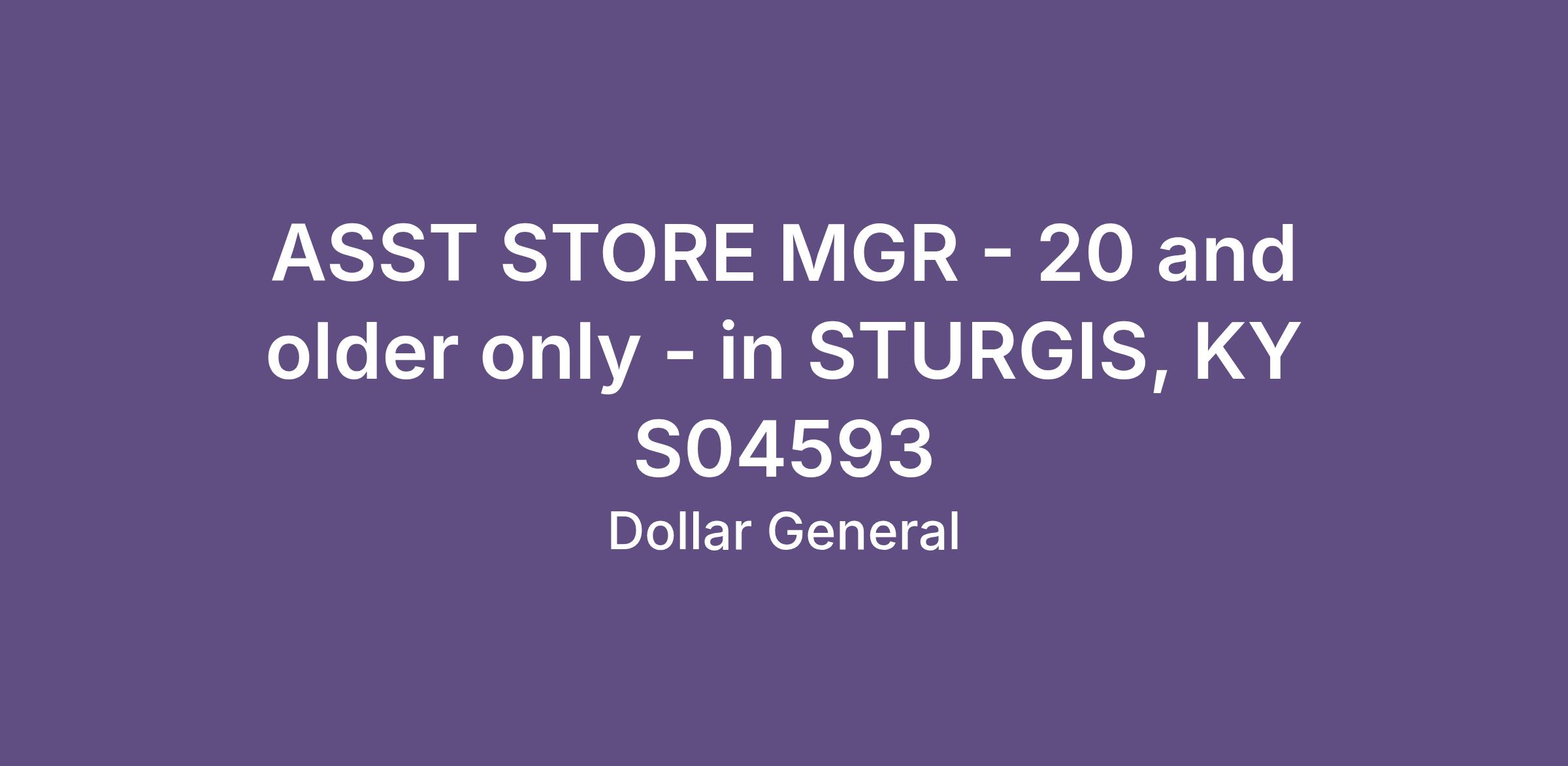 ASST STORE MGR - 20 and older only - in STURGIS, KY S04593