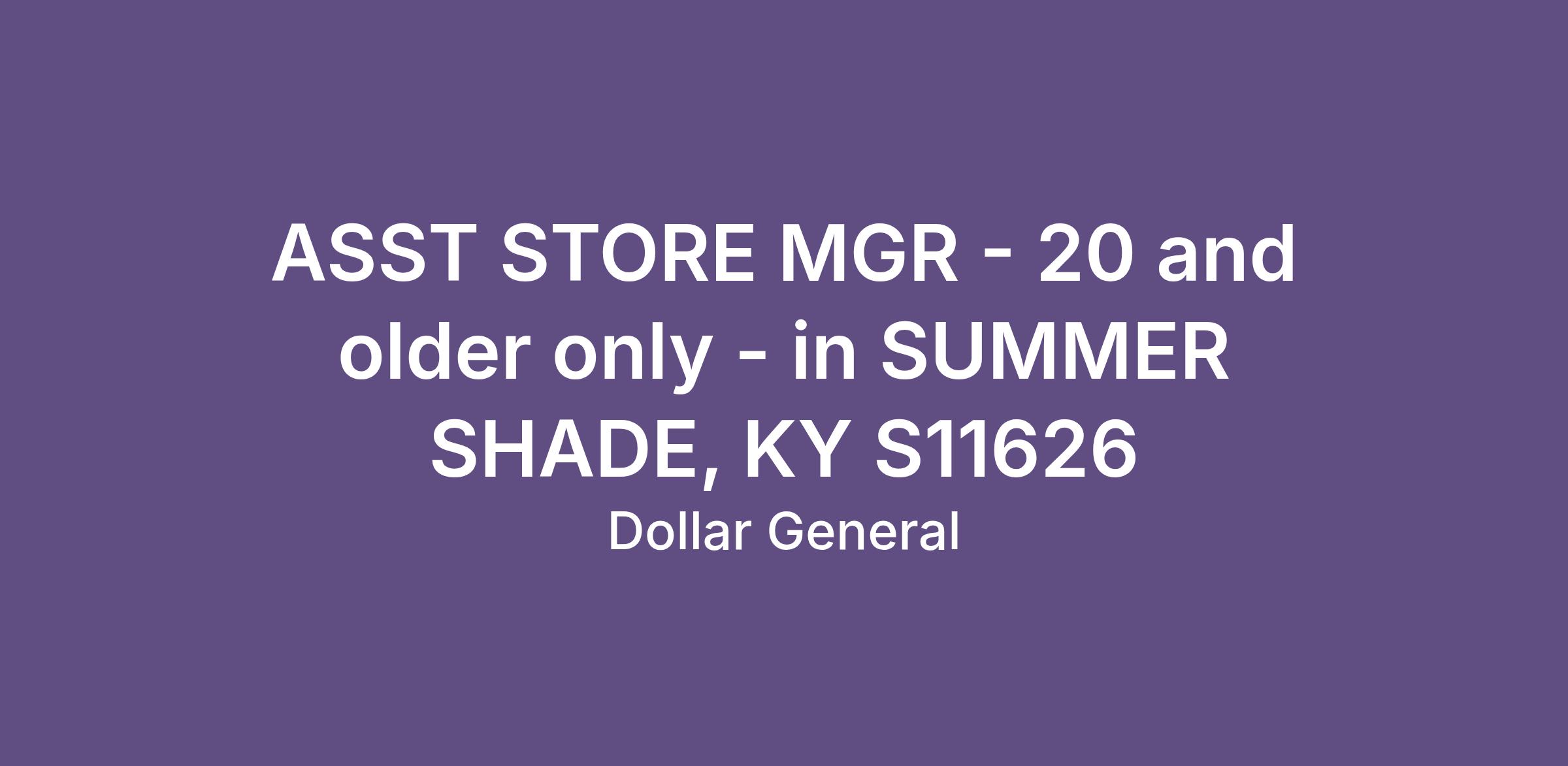 ASST STORE MGR - 20 and older only - in SUMMER SHADE, KY S11626