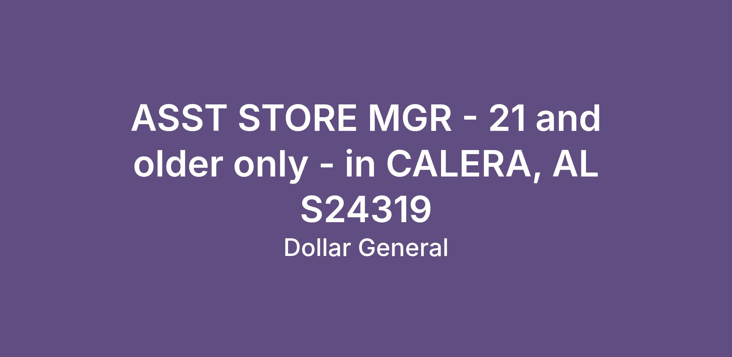 ASST STORE MGR - 21 and older only - in CALERA, AL S24319
