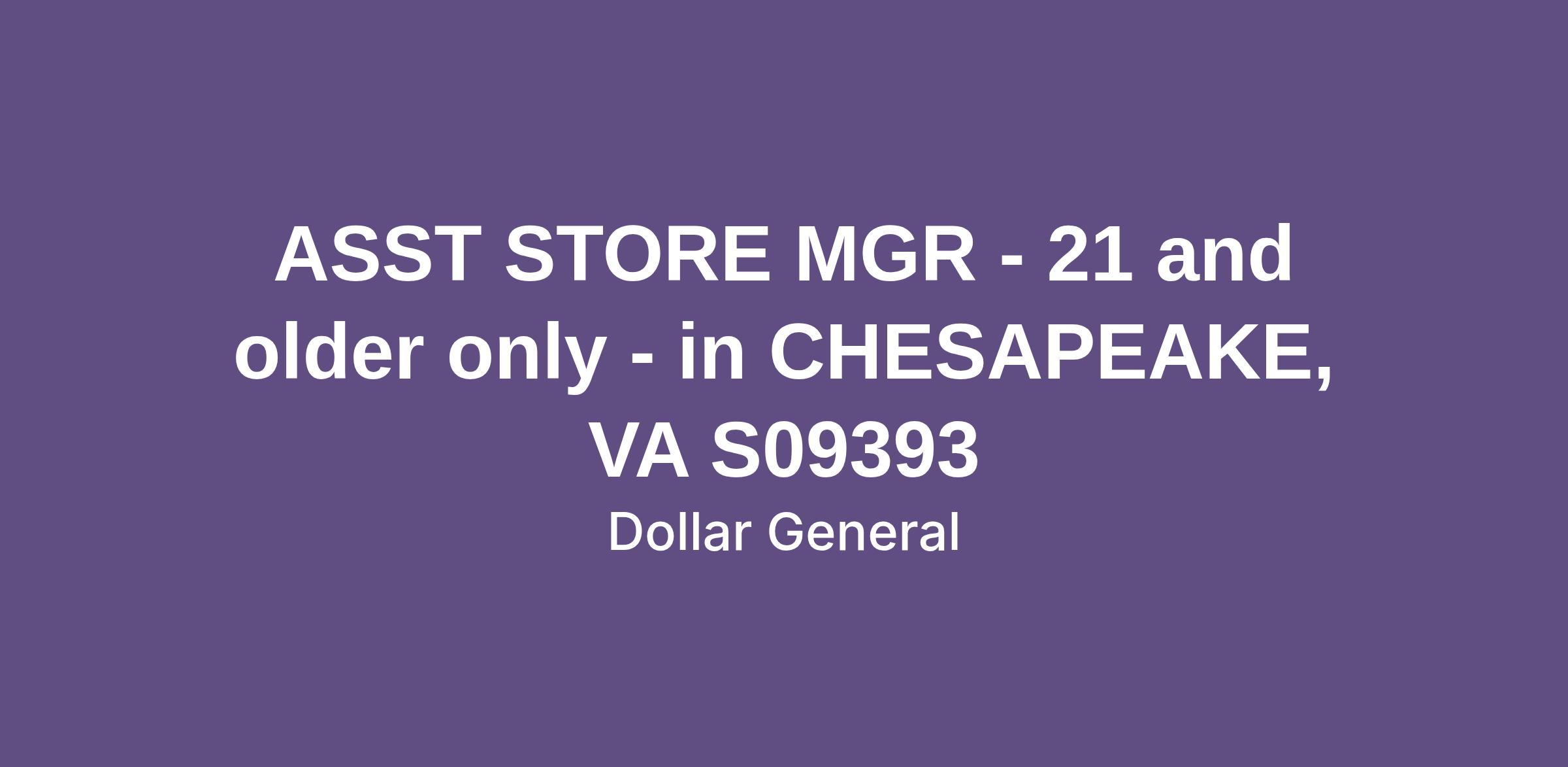 ASST STORE MGR - 21 and older only - in CHESAPEAKE, VA S09393