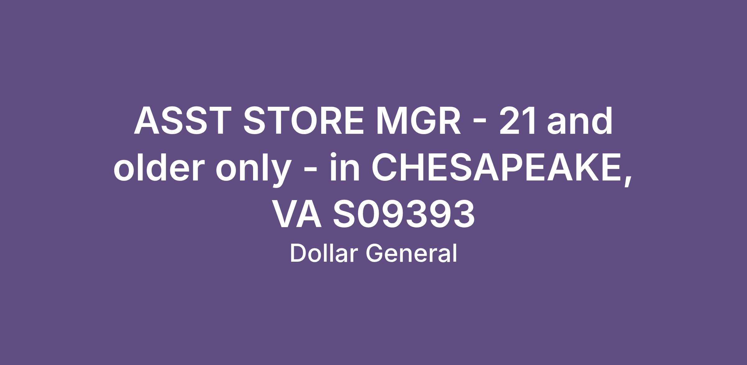 ASST STORE MGR - 21 and older only - in CHESAPEAKE, VA S09393