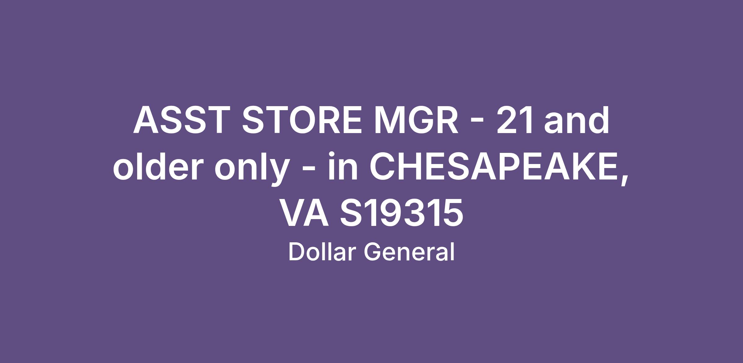 ASST STORE MGR - 21 and older only - in CHESAPEAKE, VA S19315