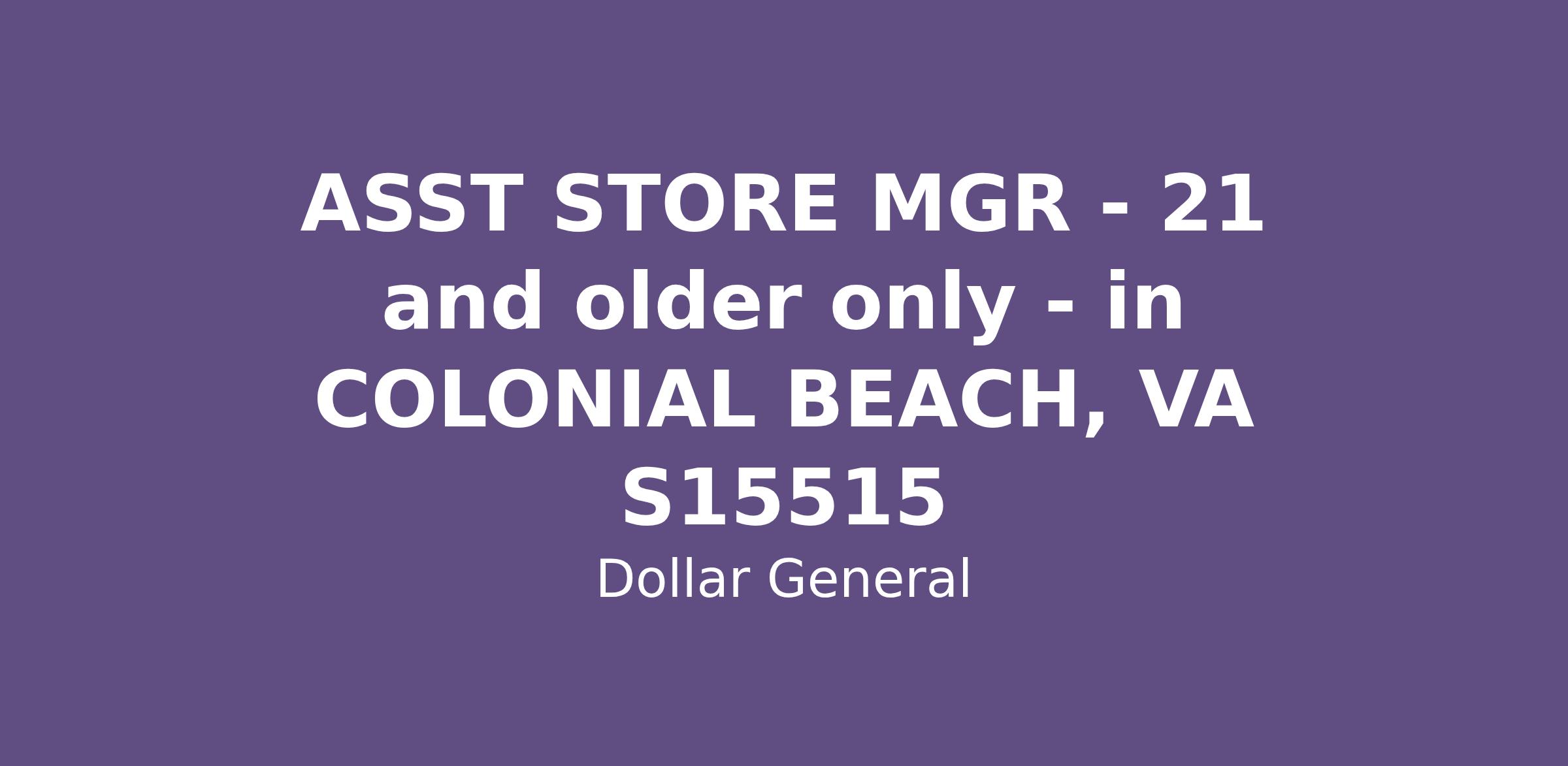 ASST STORE MGR - 21 and older only - in COLONIAL BEACH, VA S15515