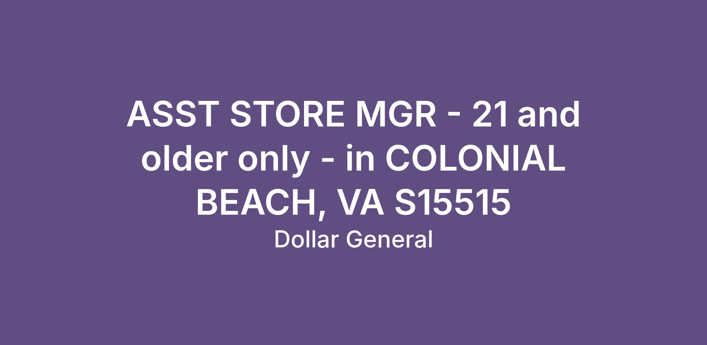 ASST STORE MGR - 21 and older only - in COLONIAL BEACH, VA S15515