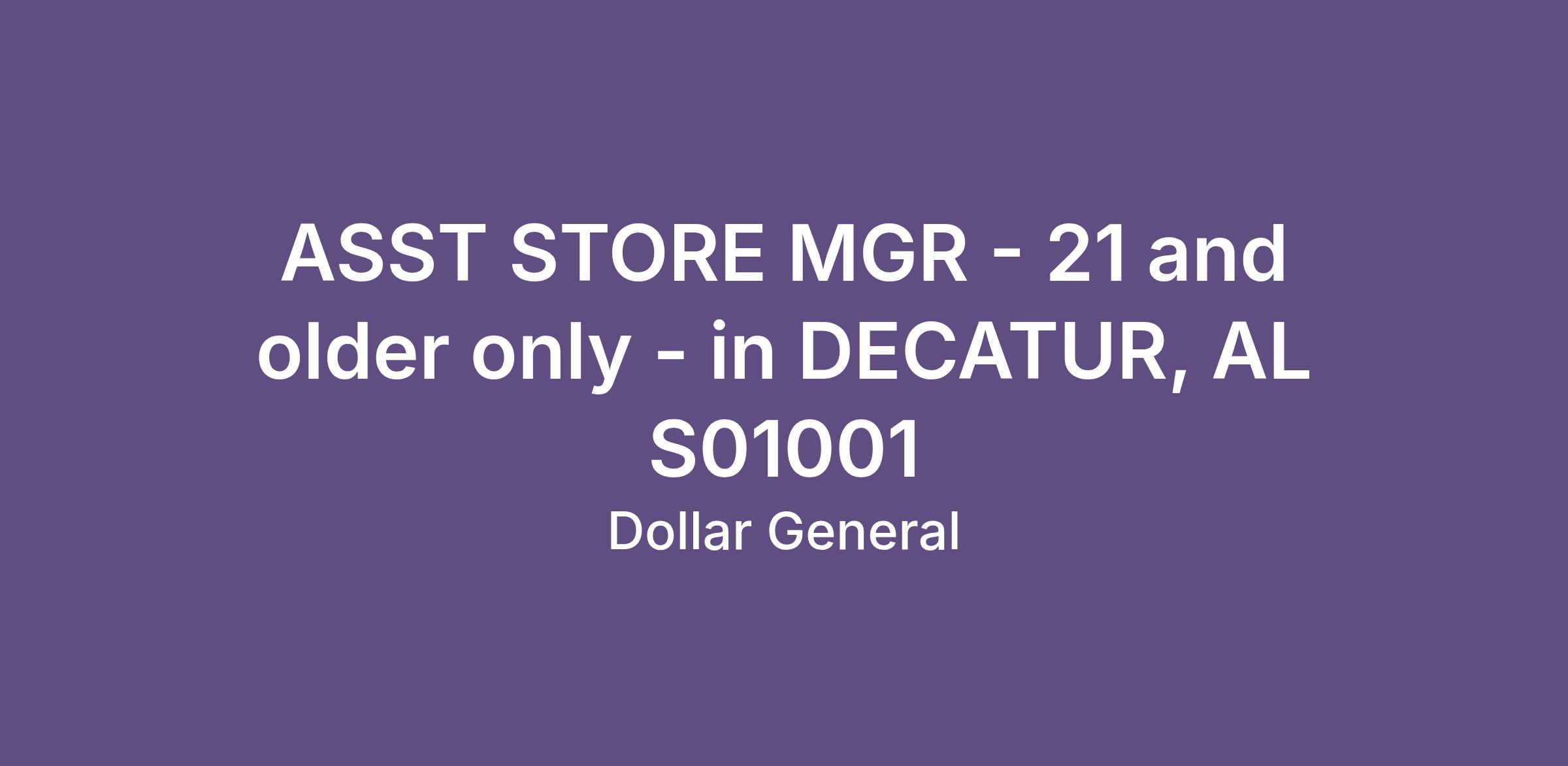 ASST STORE MGR - 21 and older only - in DECATUR, AL S01001