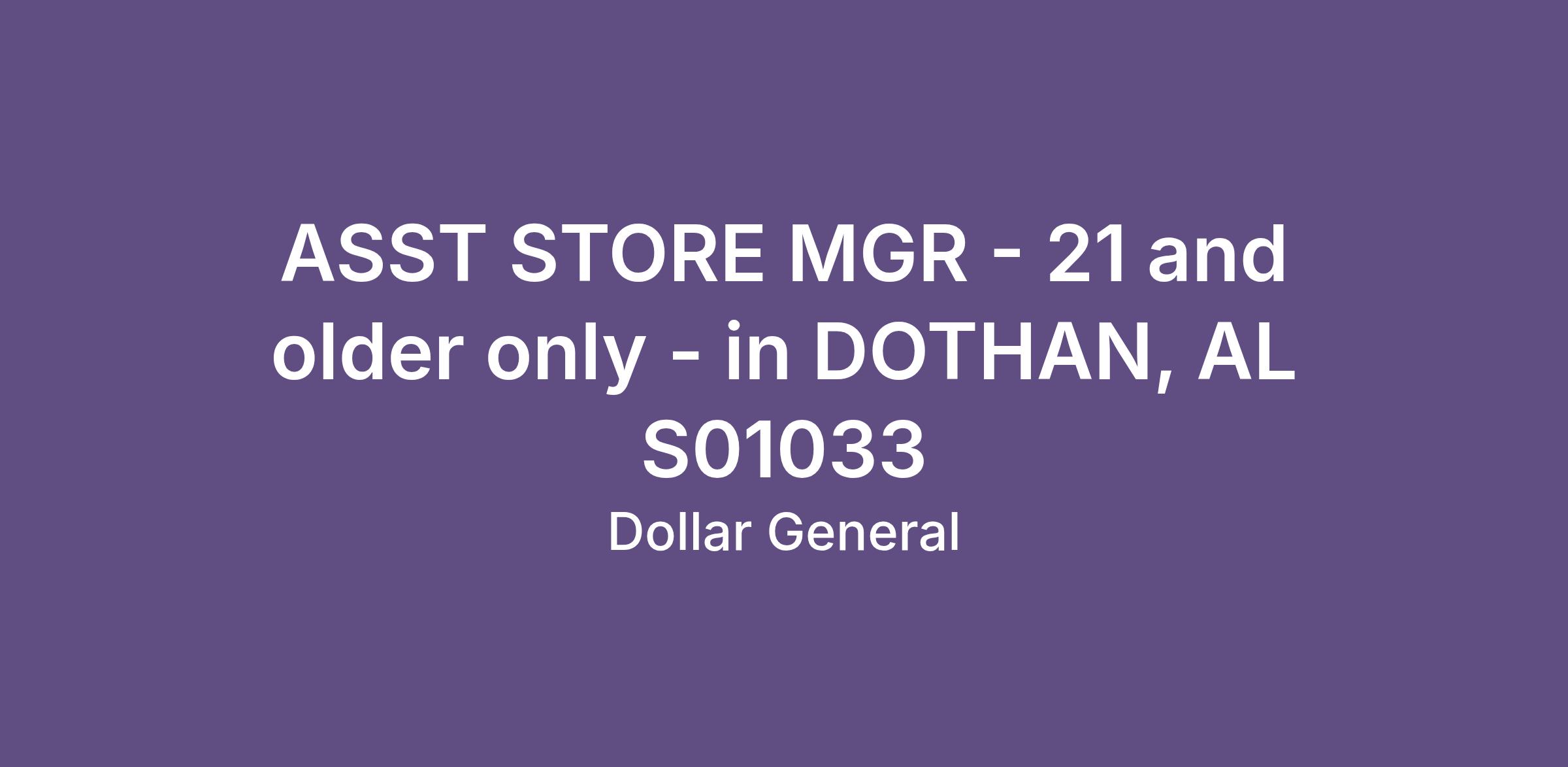 ASST STORE MGR - 21 and older only - in DOTHAN, AL S01033