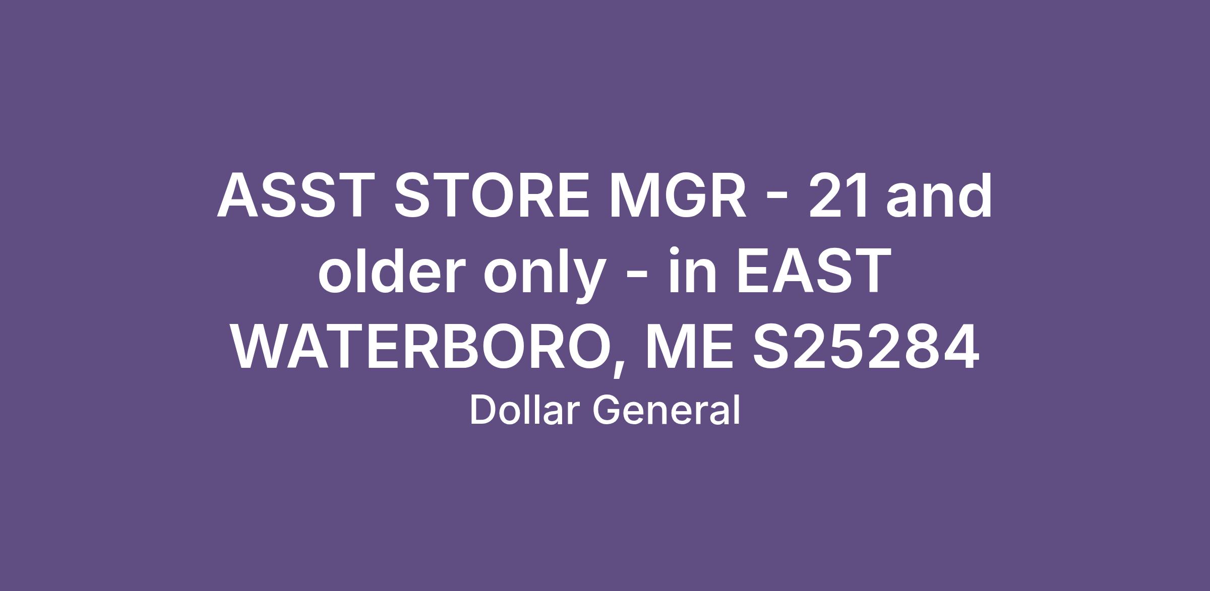 ASST STORE MGR - 21 and older only - in EAST WATERBORO, ME S25284