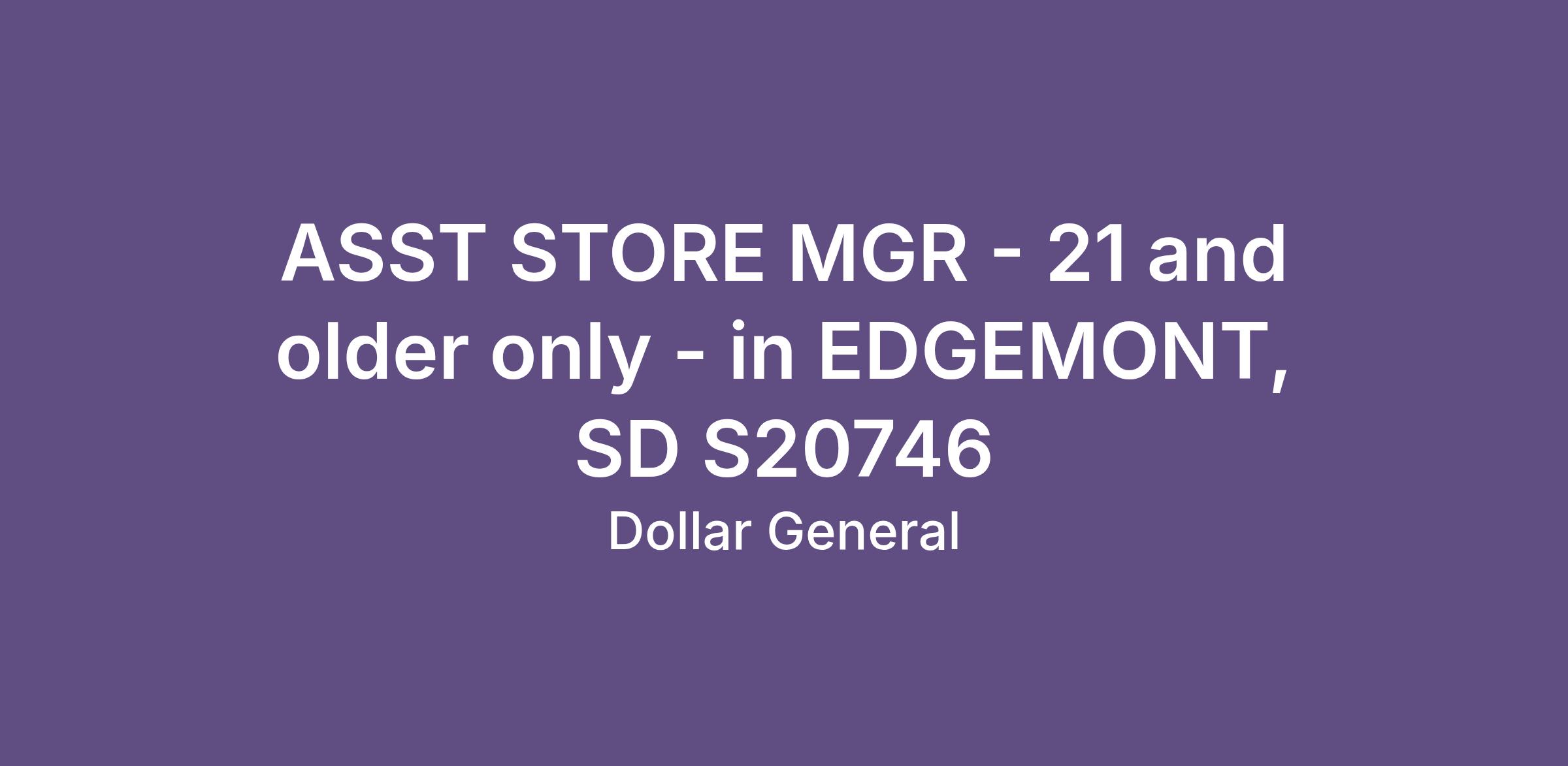 ASST STORE MGR - 21 and older only - in EDGEMONT, SD S20746