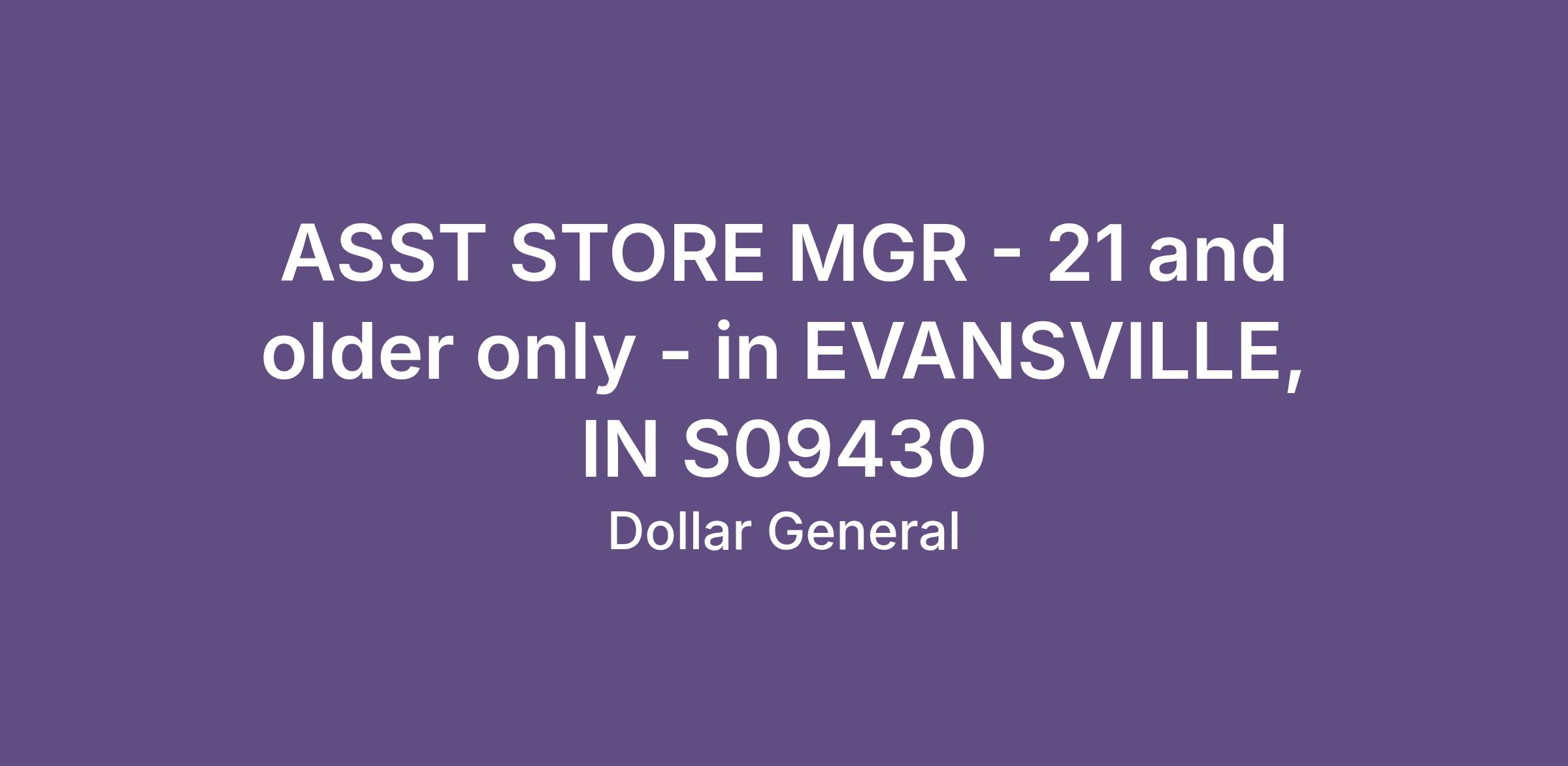 ASST STORE MGR - 21 and older only - in EVANSVILLE, IN S09430