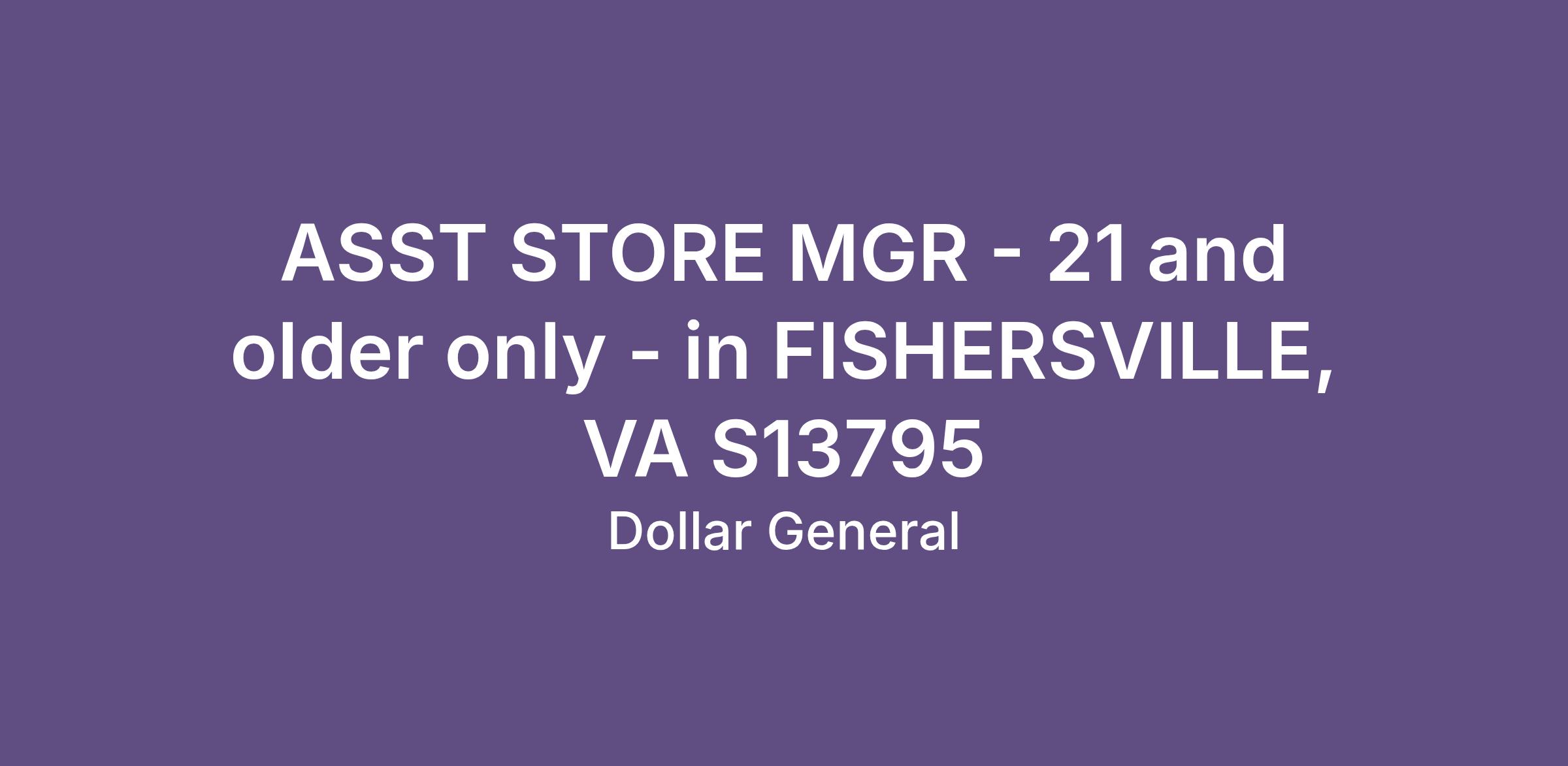 ASST STORE MGR - 21 and older only - in FISHERSVILLE, VA S13795