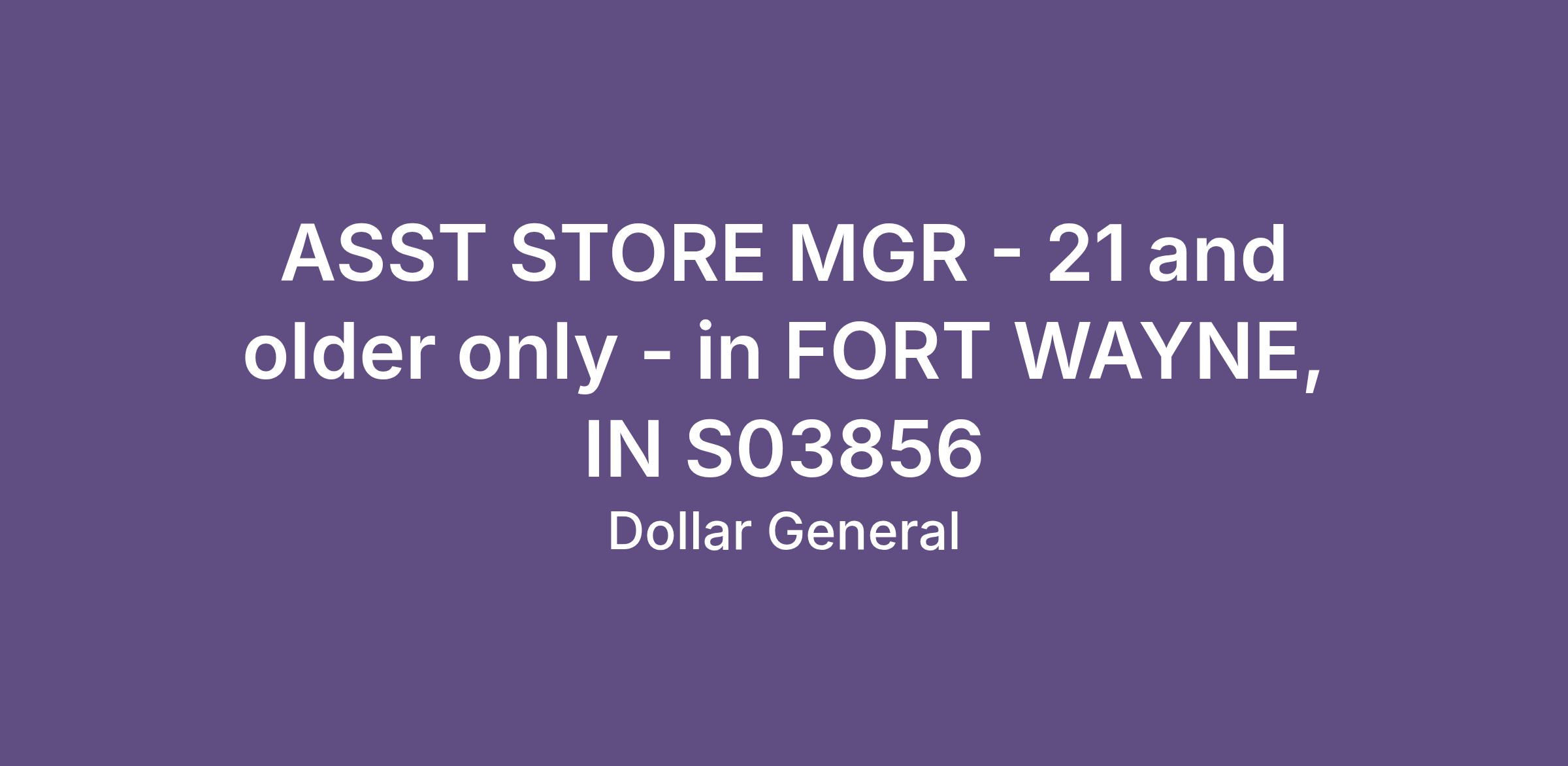 ASST STORE MGR - 21 and older only - in FORT WAYNE, IN S03856
