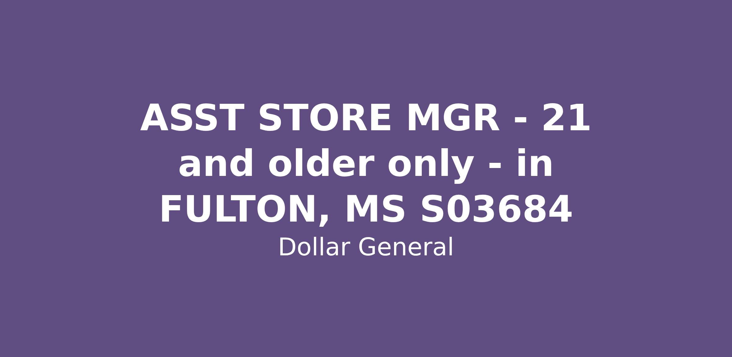 ASST STORE MGR - 21 and older only - in FULTON, MS S03684