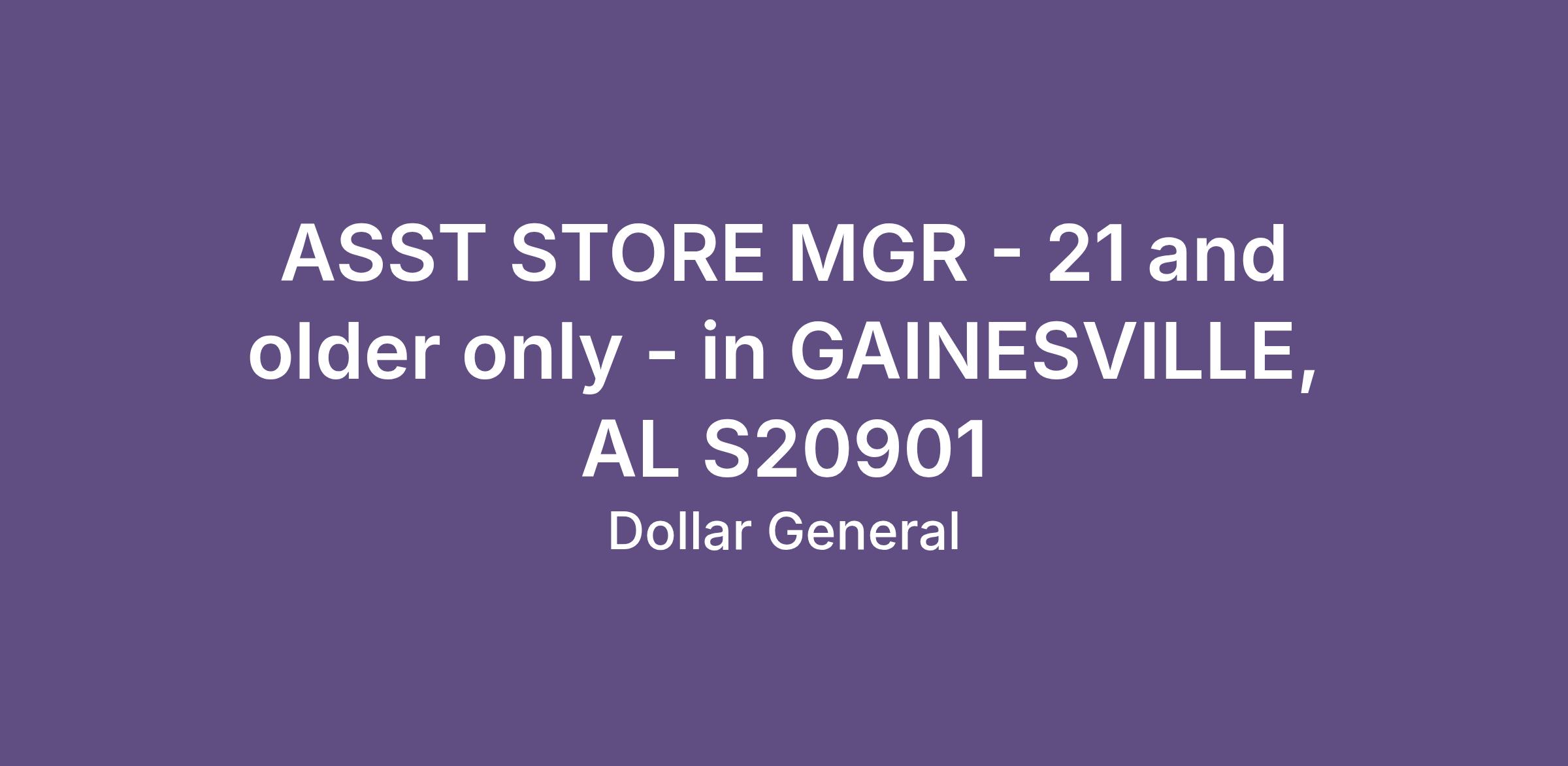 ASST STORE MGR - 21 and older only - in GAINESVILLE, AL S20901