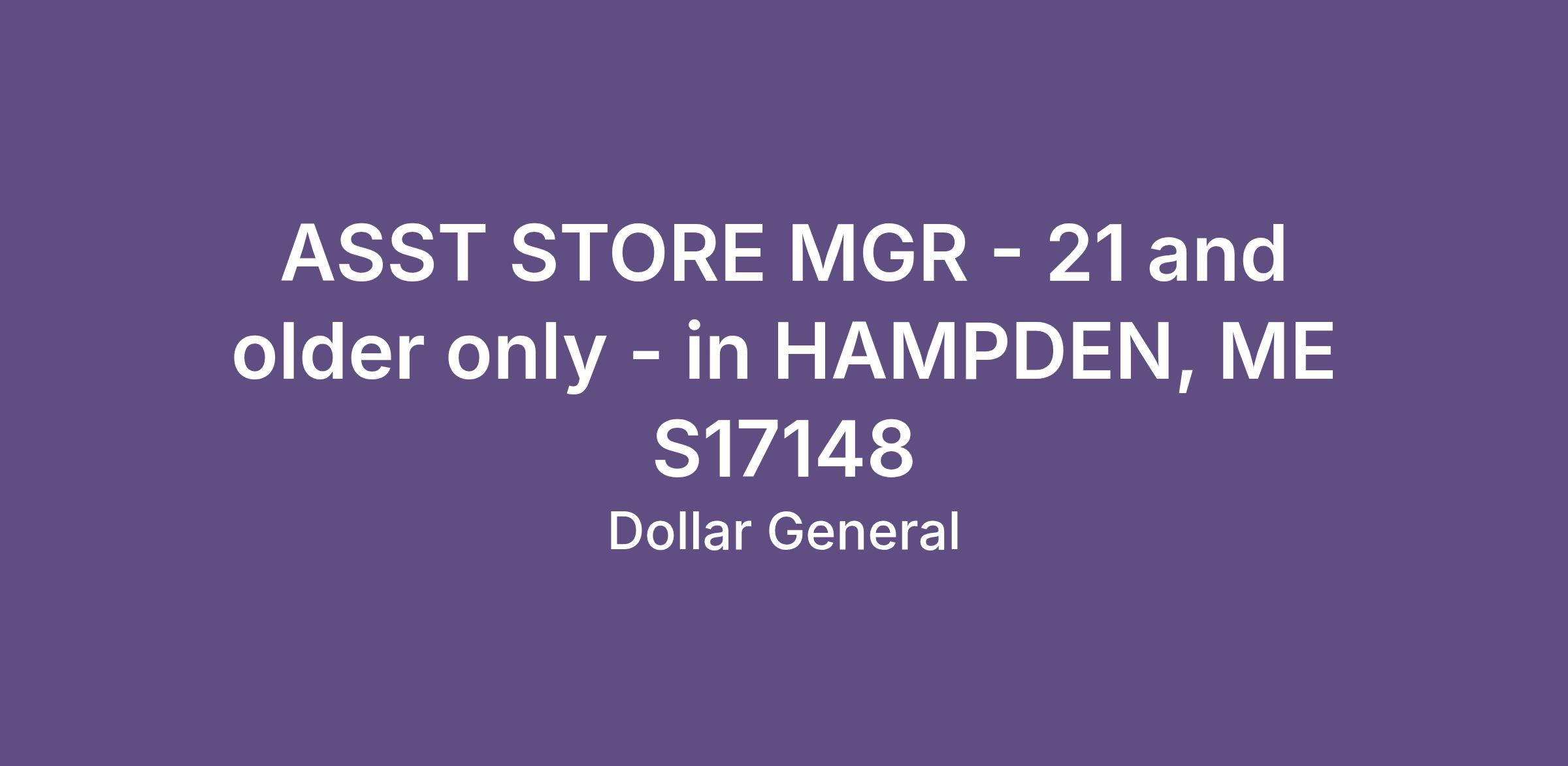 ASST STORE MGR - 21 and older only - in HAMPDEN, ME S17148