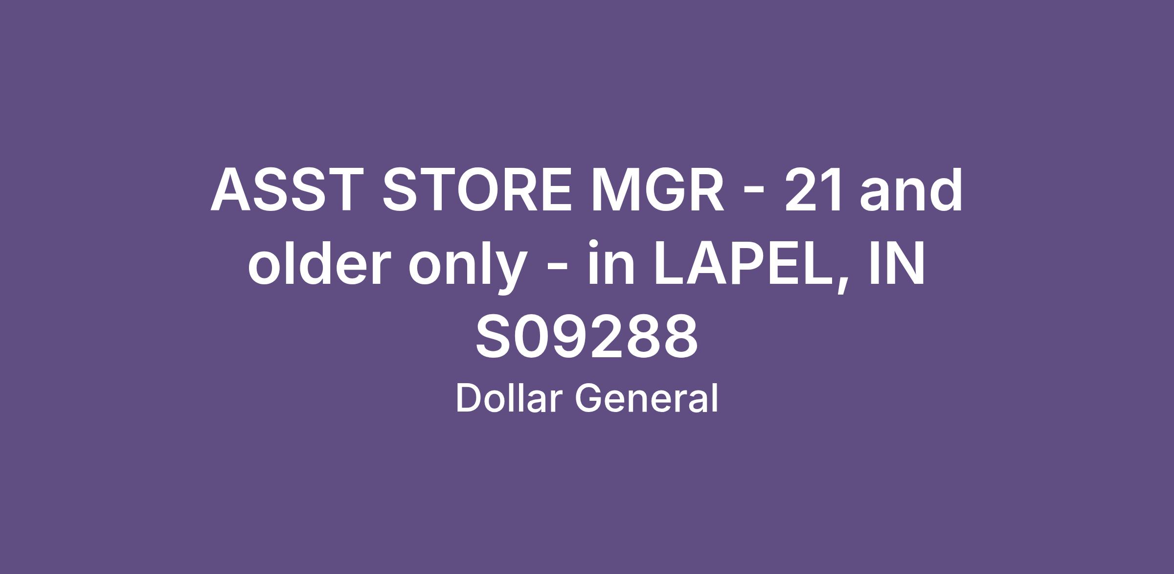 ASST STORE MGR - 21 and older only - in LAPEL, IN S09288