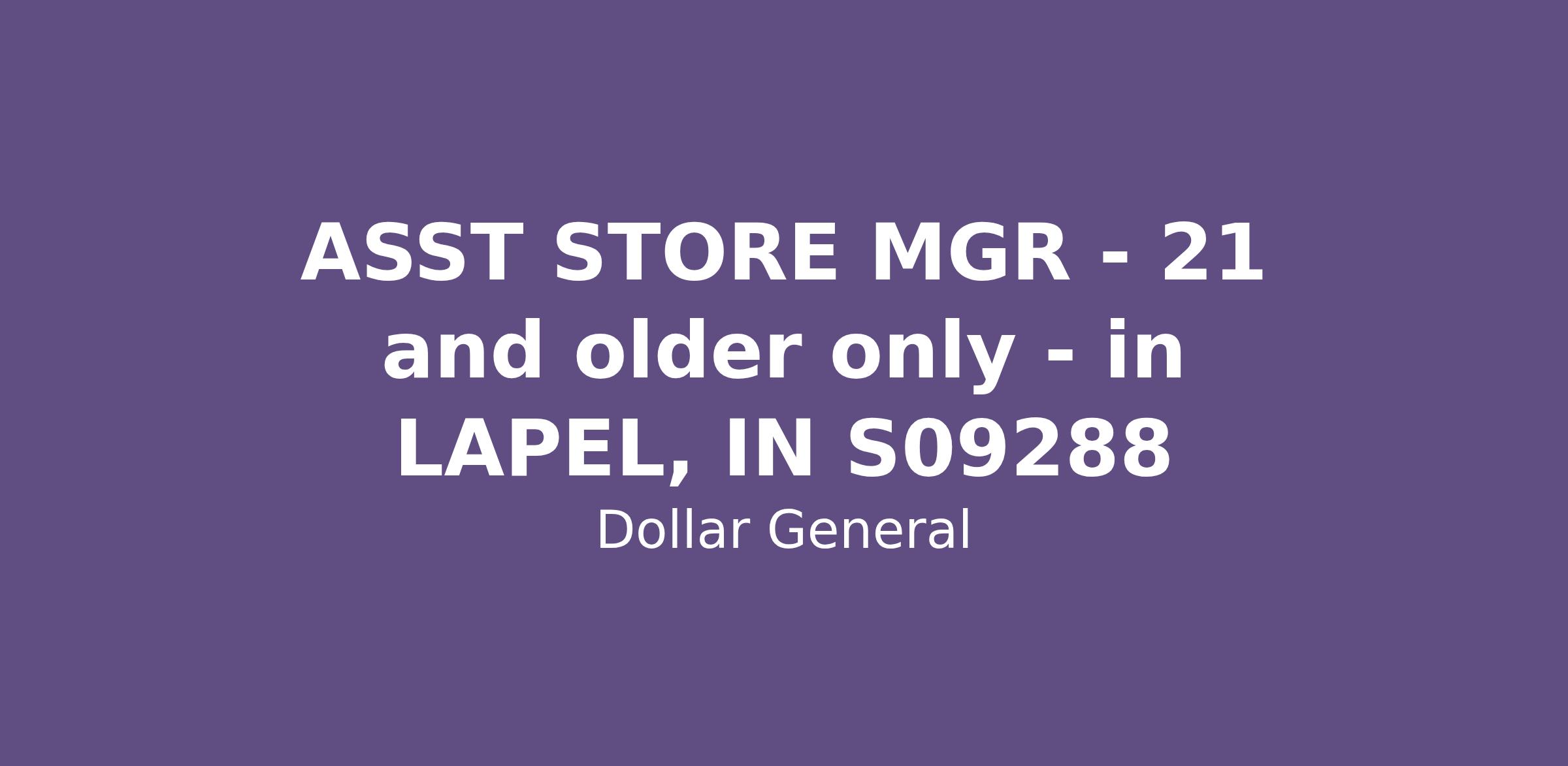 ASST STORE MGR - 21 and older only - in LAPEL, IN S09288