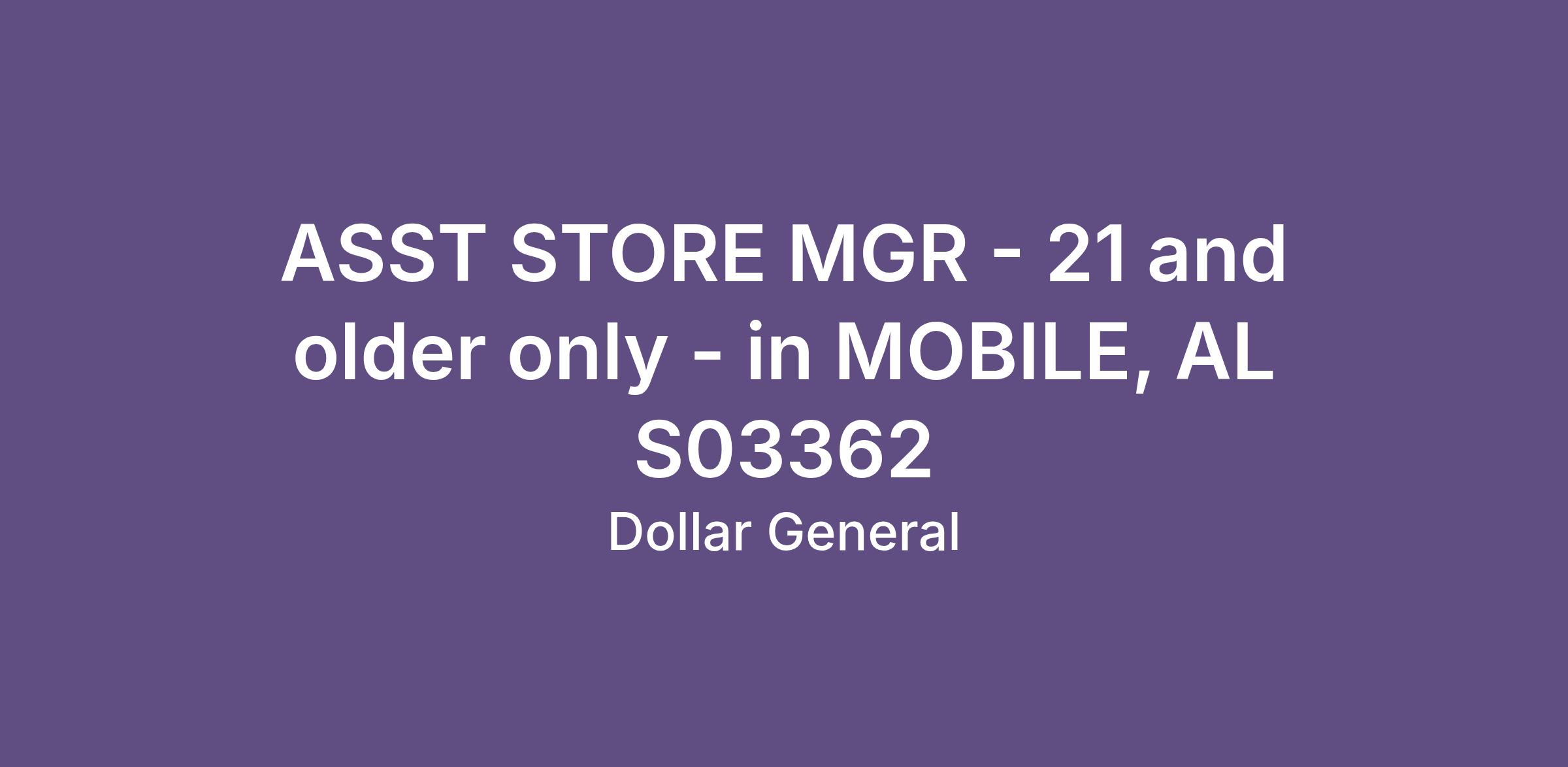 ASST STORE MGR - 21 and older only - in MOBILE, AL S03362