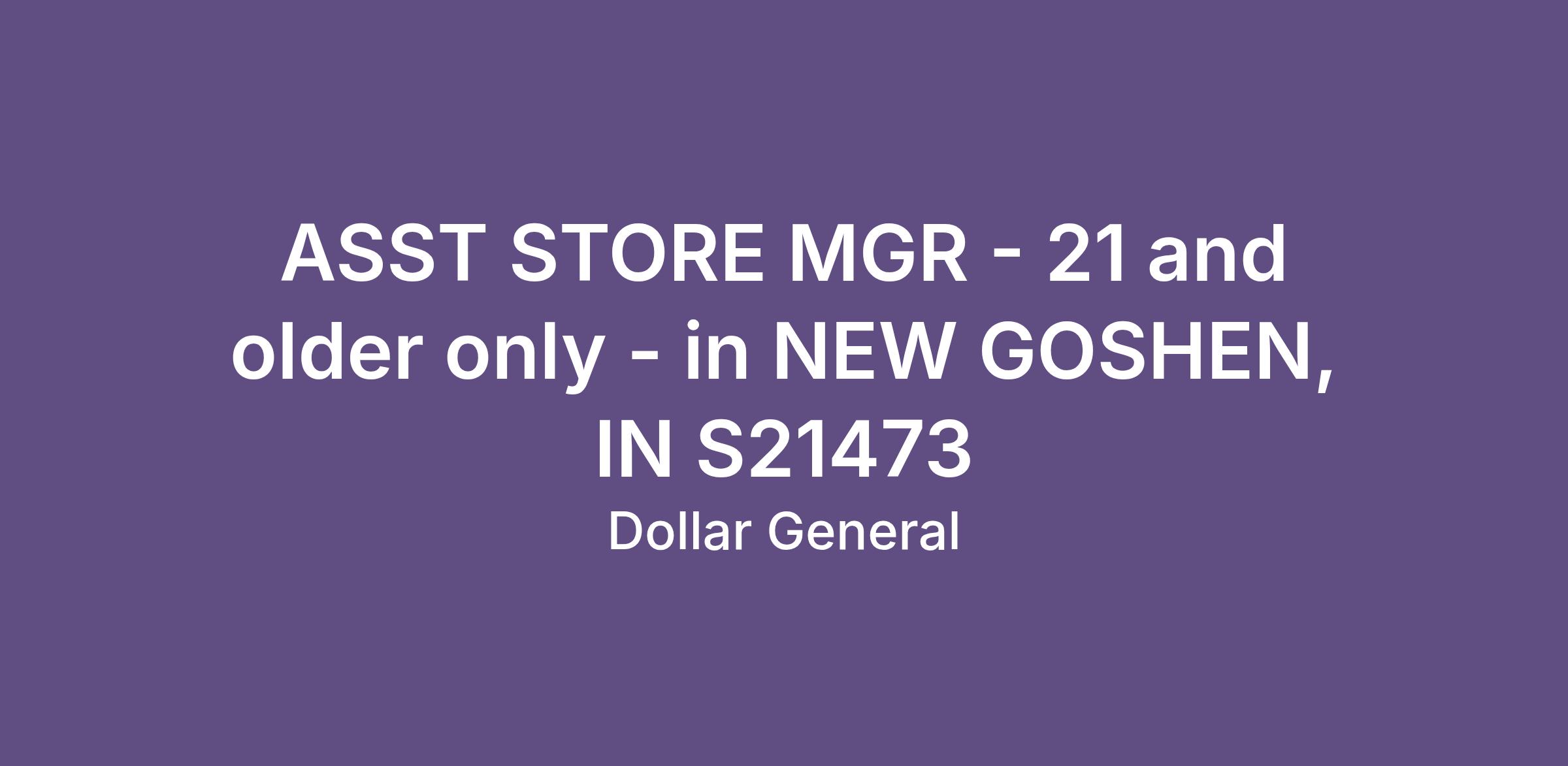 ASST STORE MGR - 21 and older only - in NEW GOSHEN, IN S21473