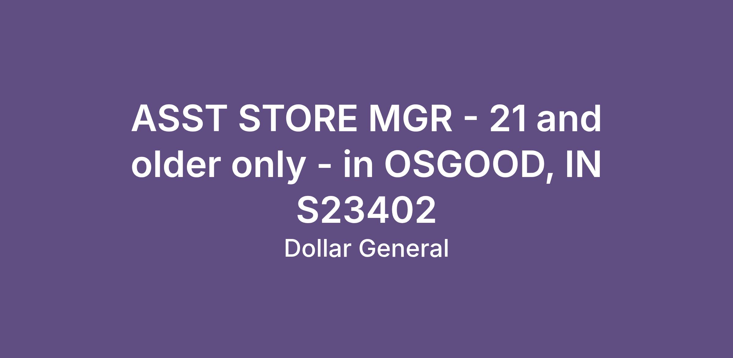 ASST STORE MGR - 21 and older only - in OSGOOD, IN S23402