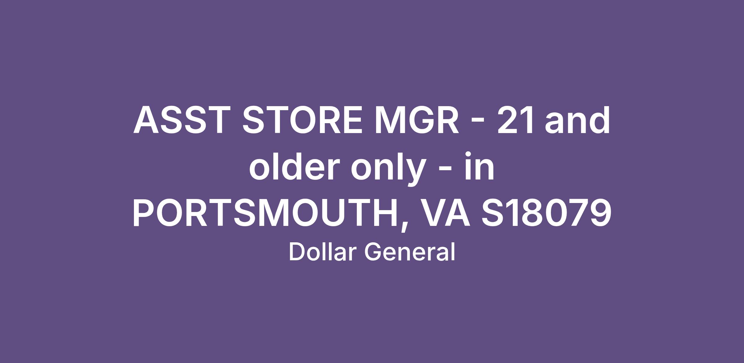 ASST STORE MGR - 21 and older only - in PORTSMOUTH, VA S18079