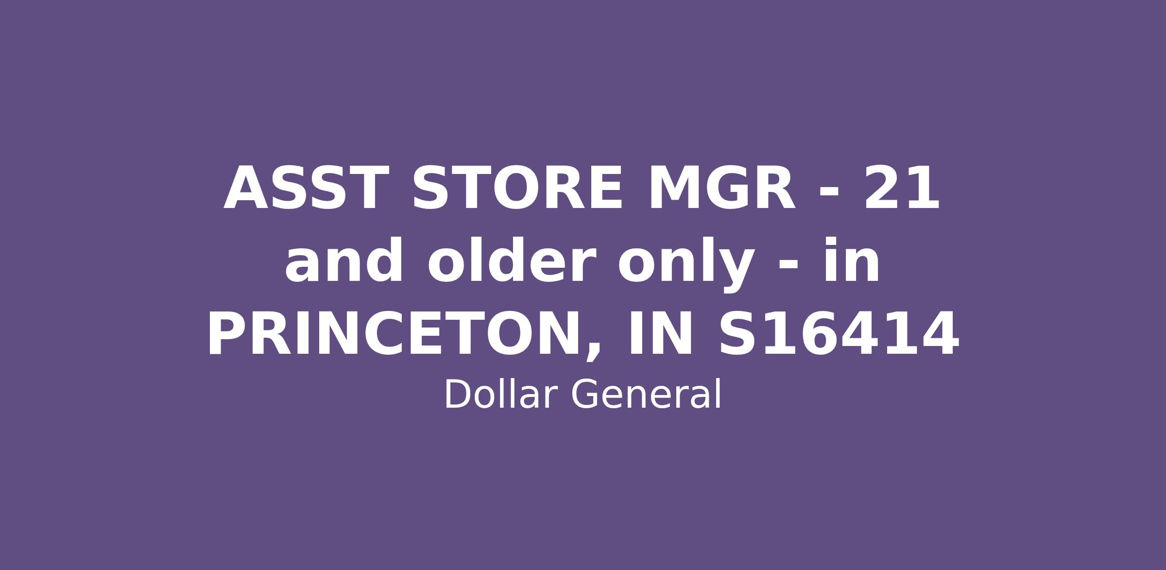 ASST STORE MGR - 21 and older only - in PRINCETON, IN S16414