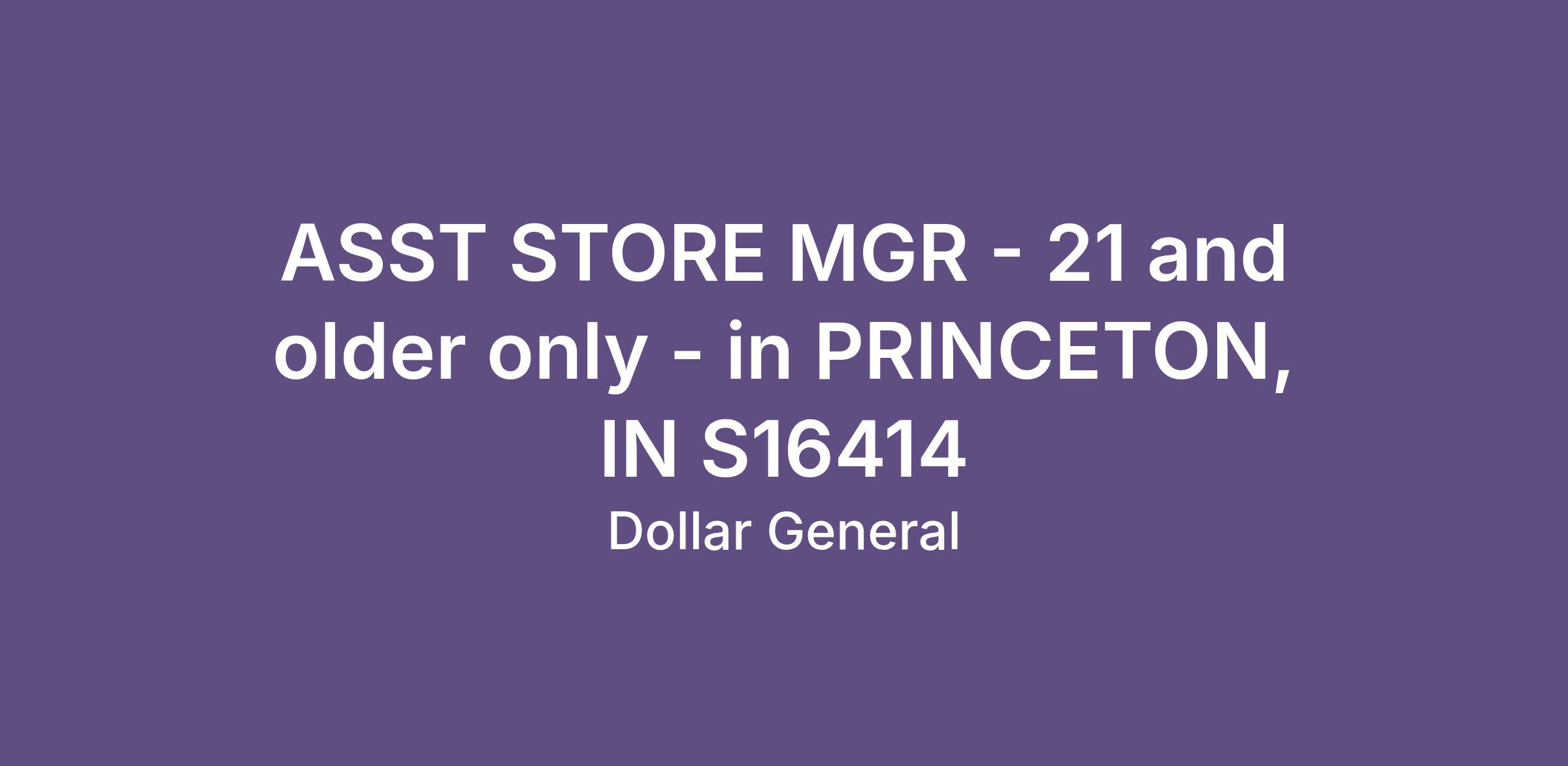ASST STORE MGR - 21 and older only - in PRINCETON, IN S16414