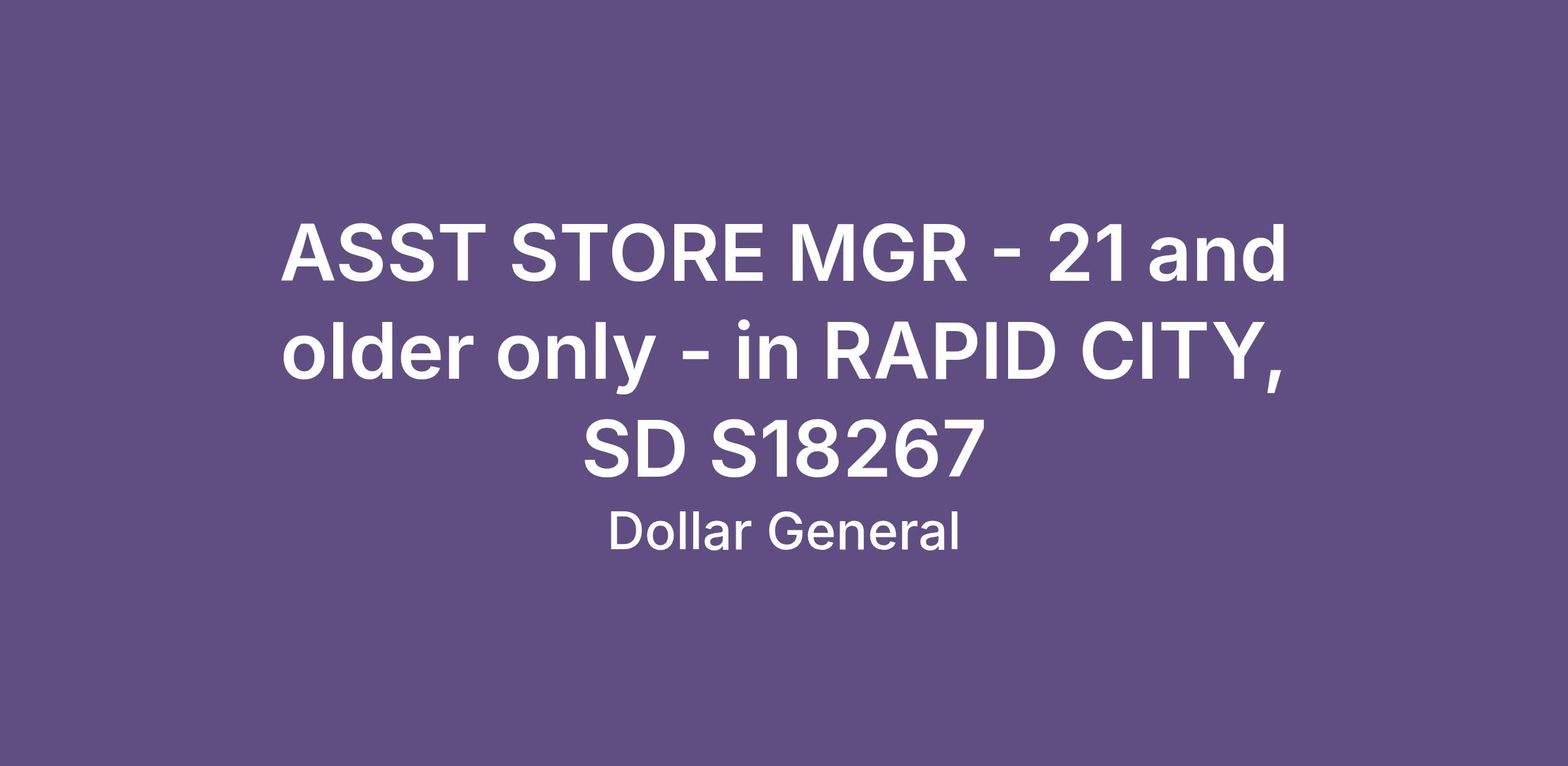 ASST STORE MGR - 21 and older only - in RAPID CITY, SD S18267