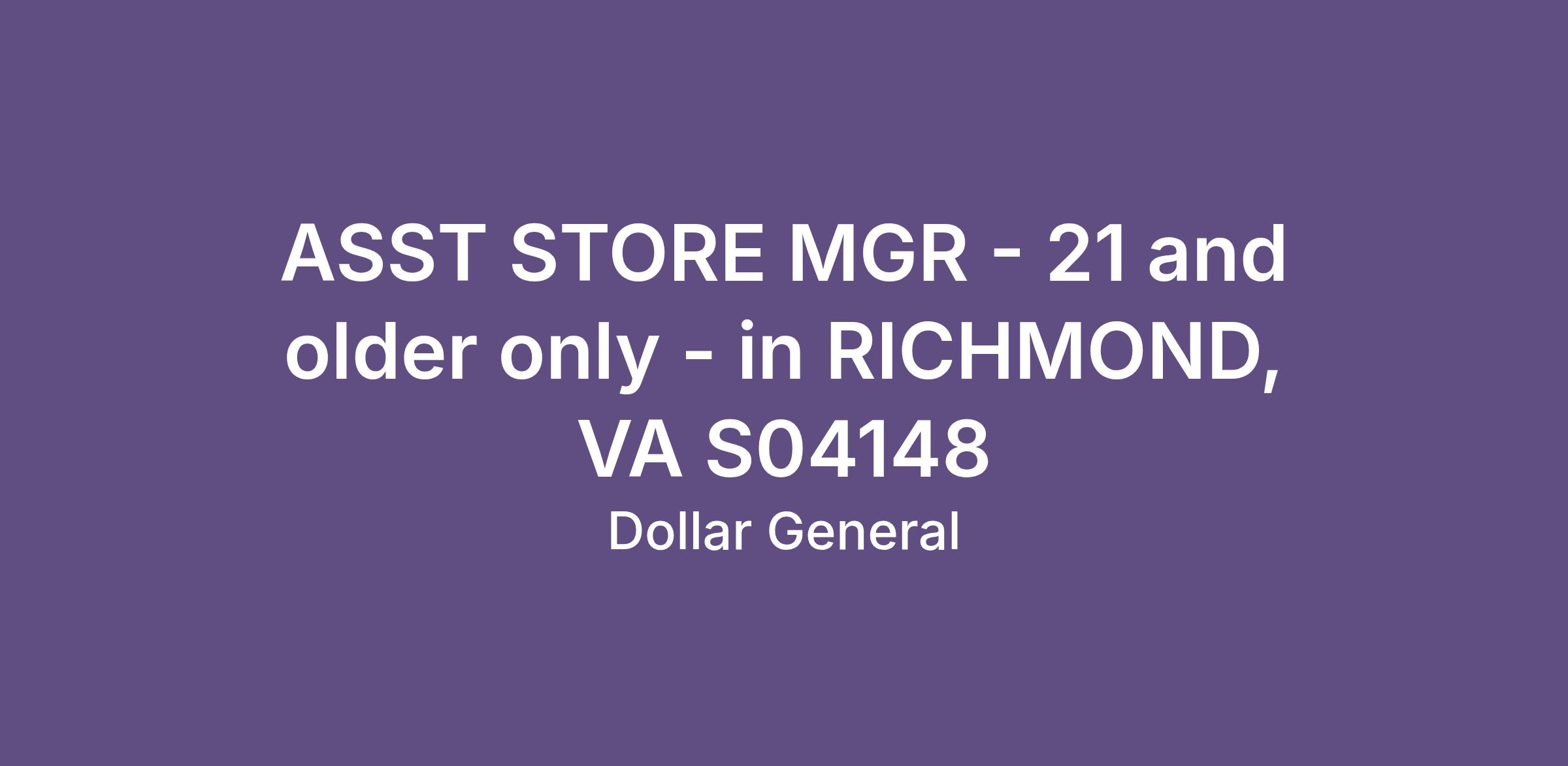 ASST STORE MGR - 21 and older only - in RICHMOND, VA S04148