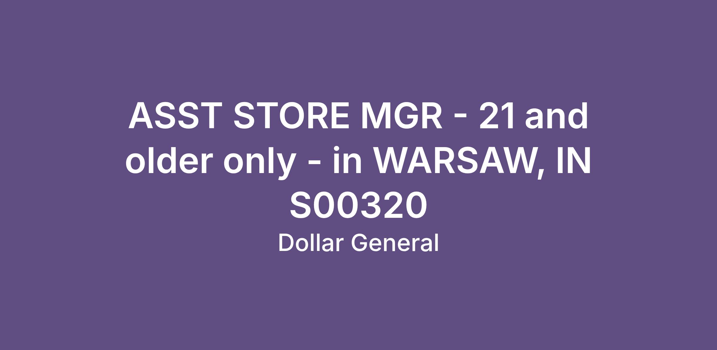 ASST STORE MGR - 21 and older only - in WARSAW, IN S00320