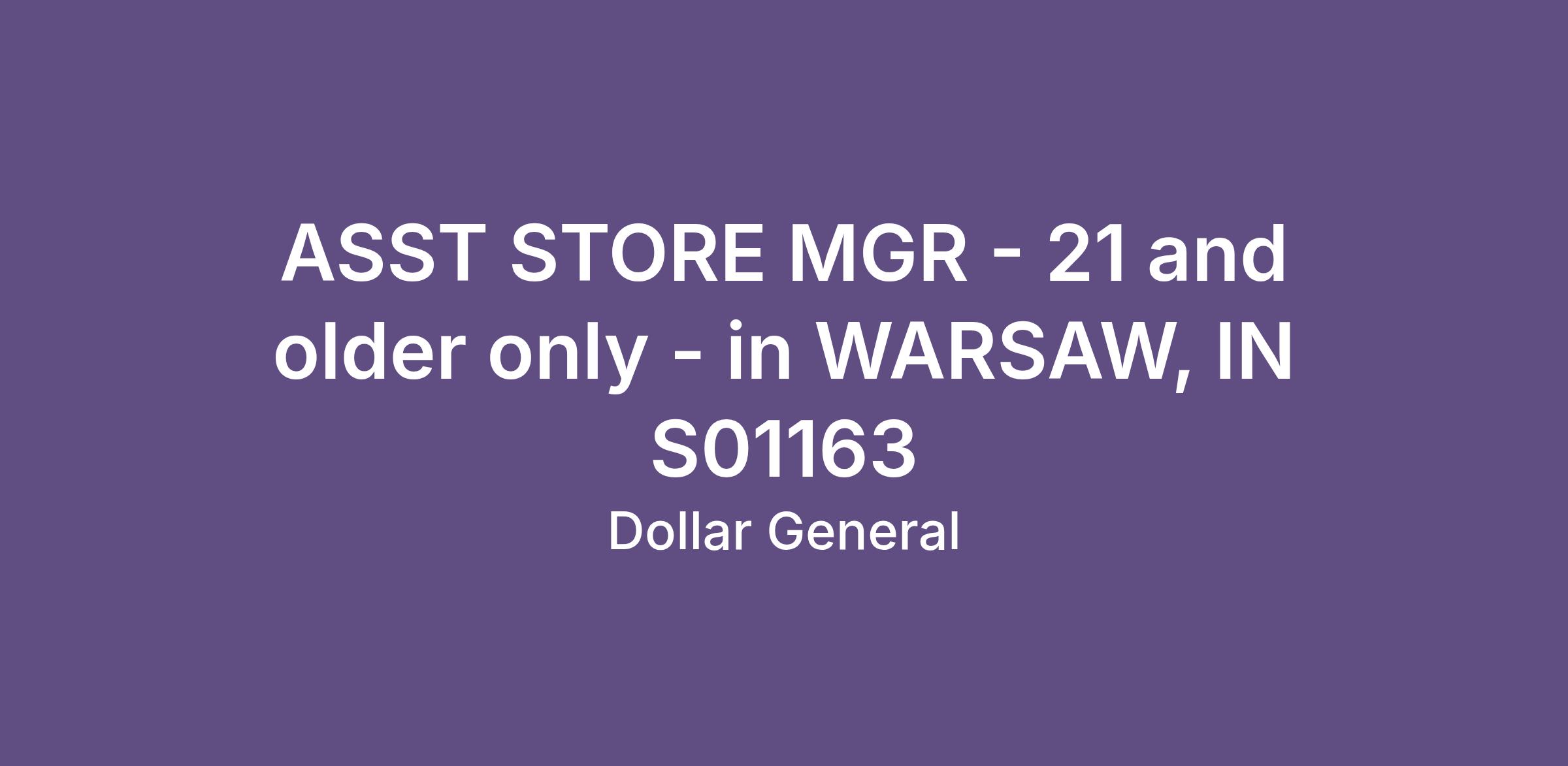 ASST STORE MGR - 21 and older only - in WARSAW, IN S01163