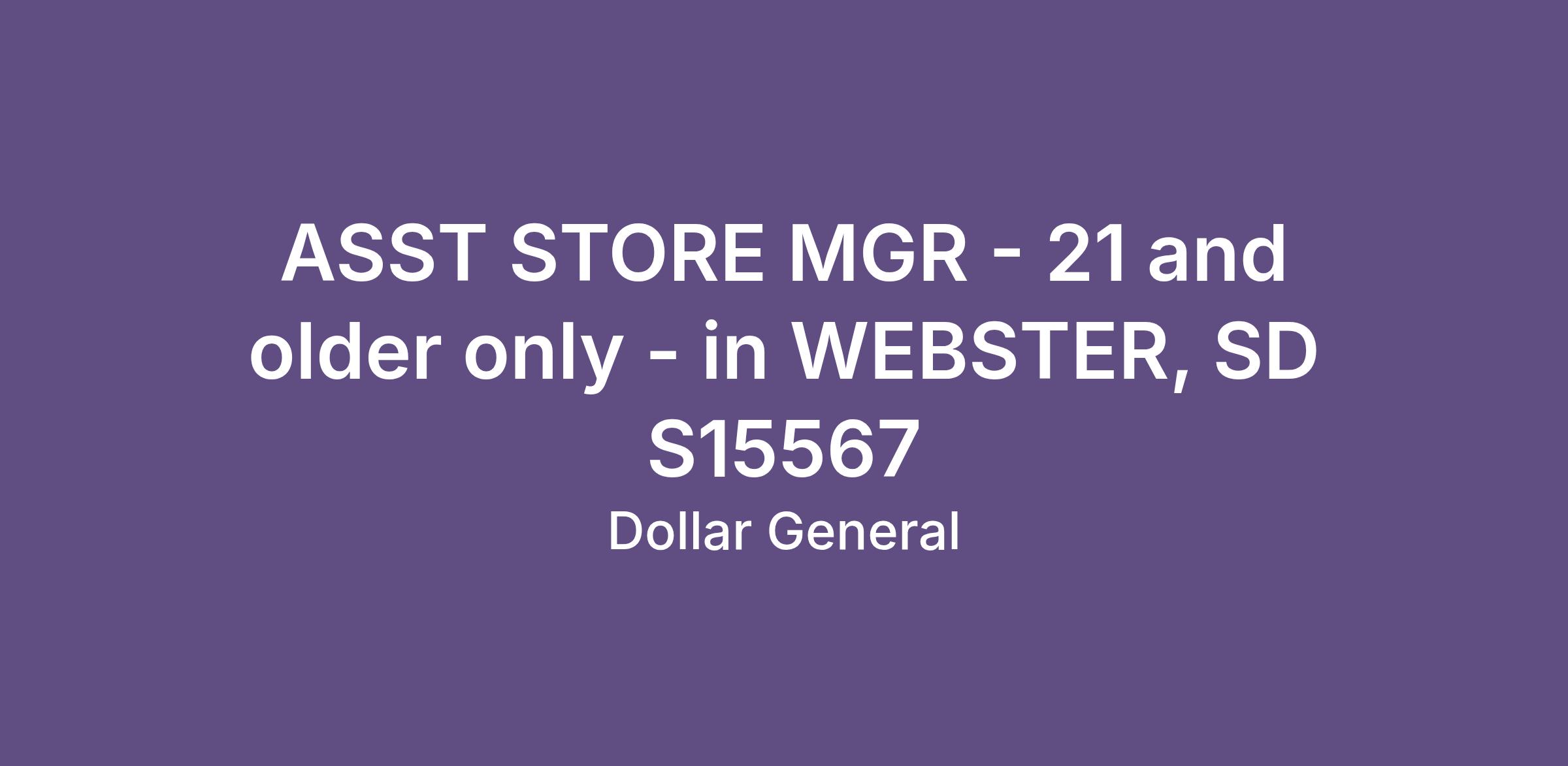 ASST STORE MGR - 21 and older only - in WEBSTER, SD S15567