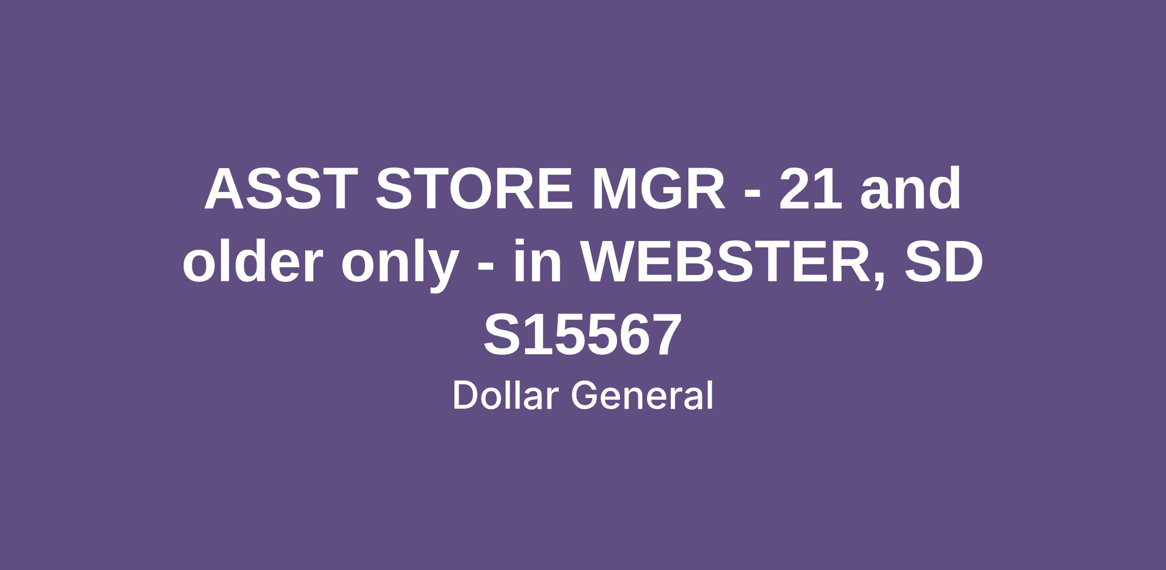 ASST STORE MGR - 21 and older only - in WEBSTER, SD S15567